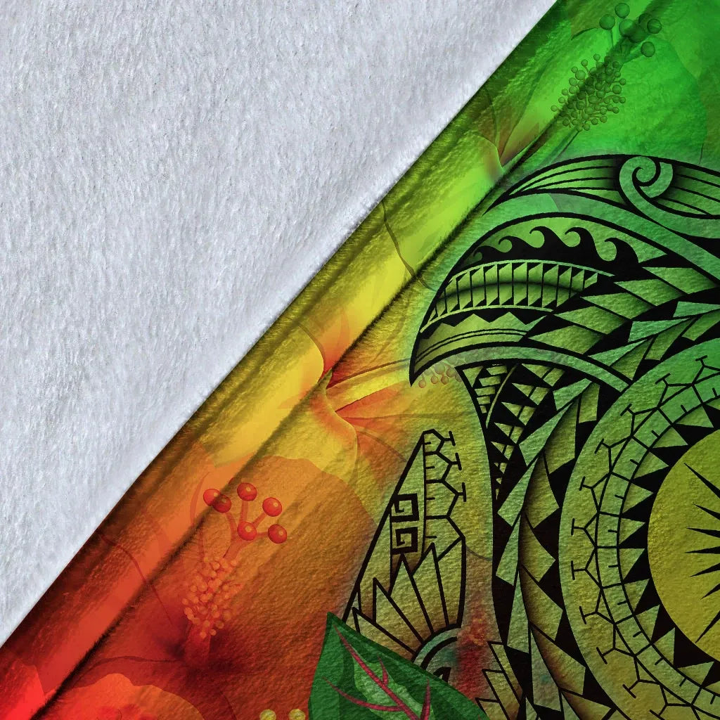 Marshall Islands Premium Blanket - Manta Ray Tropical Flowers (Green)