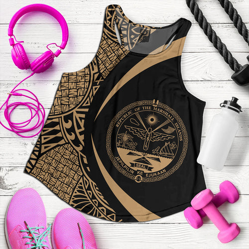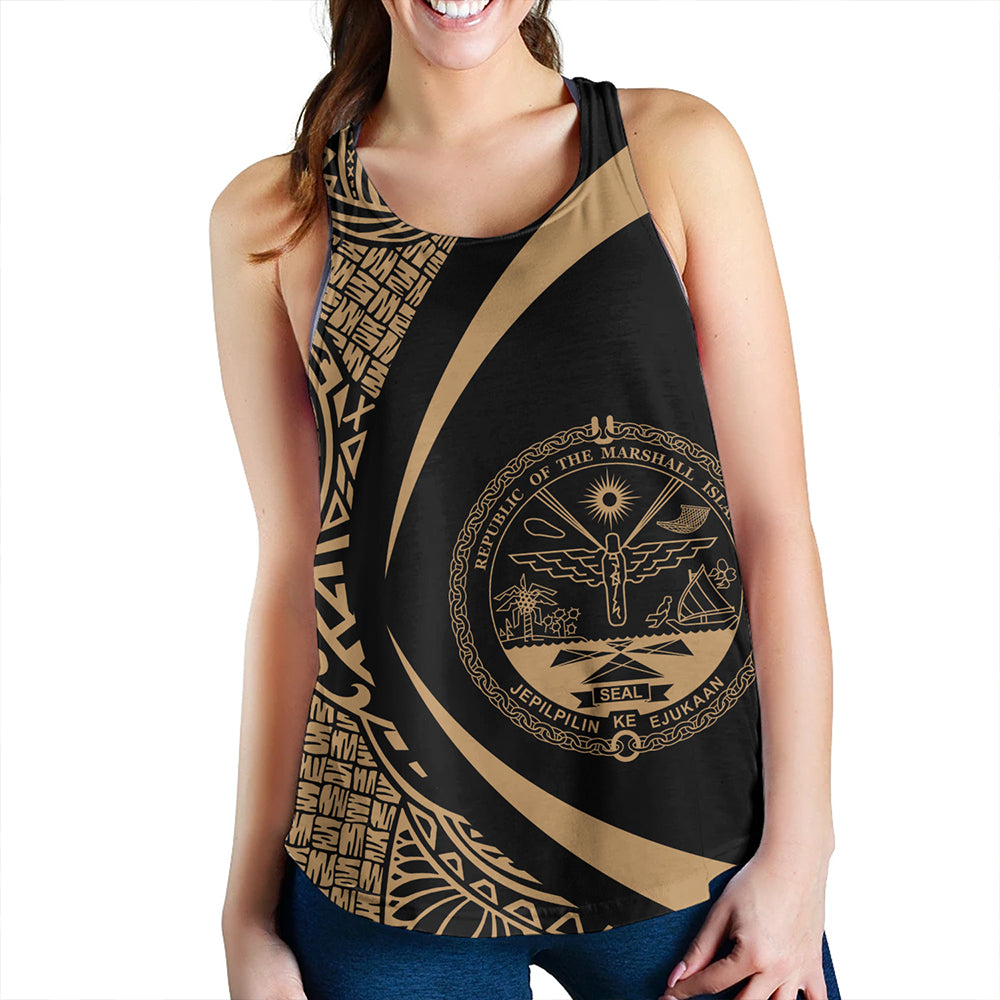 Marshall Islands Women Tank Coat Of Arm Lauhala Gold Circle