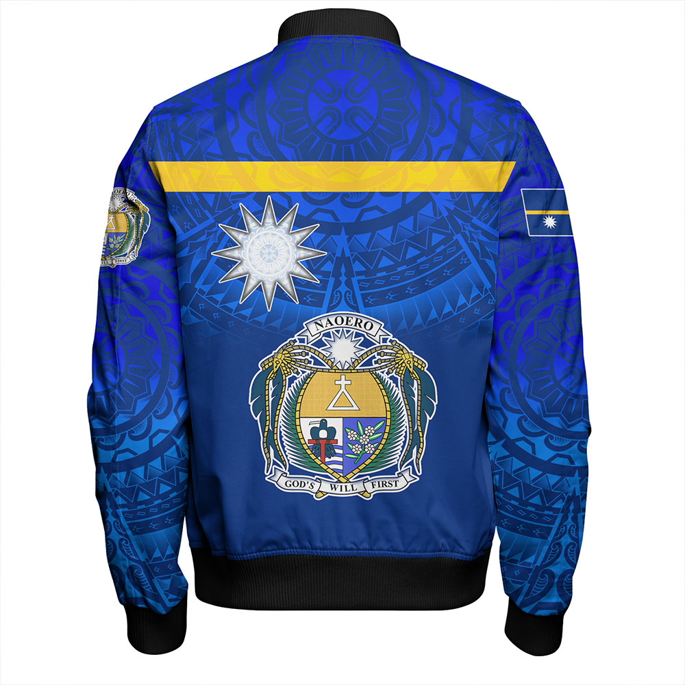 Nauru Bomber Jacket Flag Color With Traditional Patterns