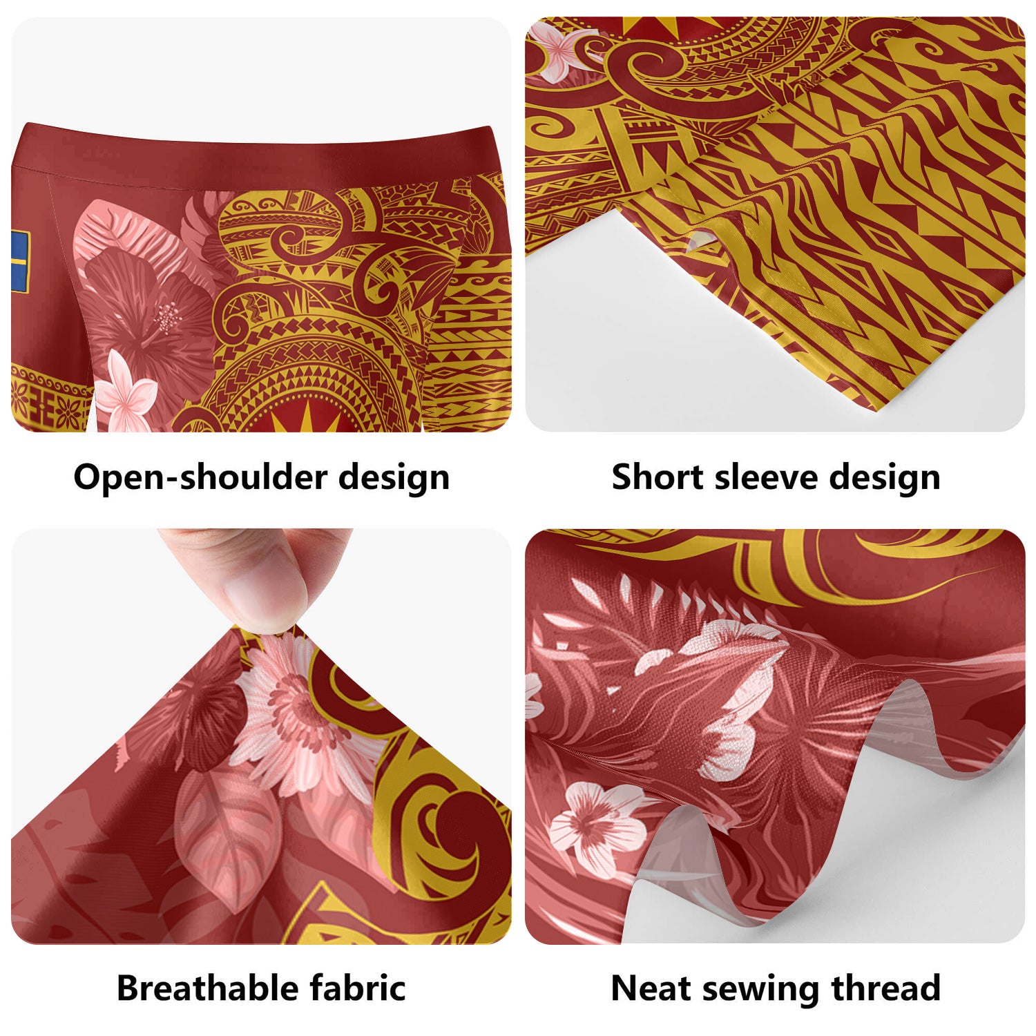 Nauru Combo Short Sleeve Dress And Shirt Polynesian Tropical Plumeria Tribal Red