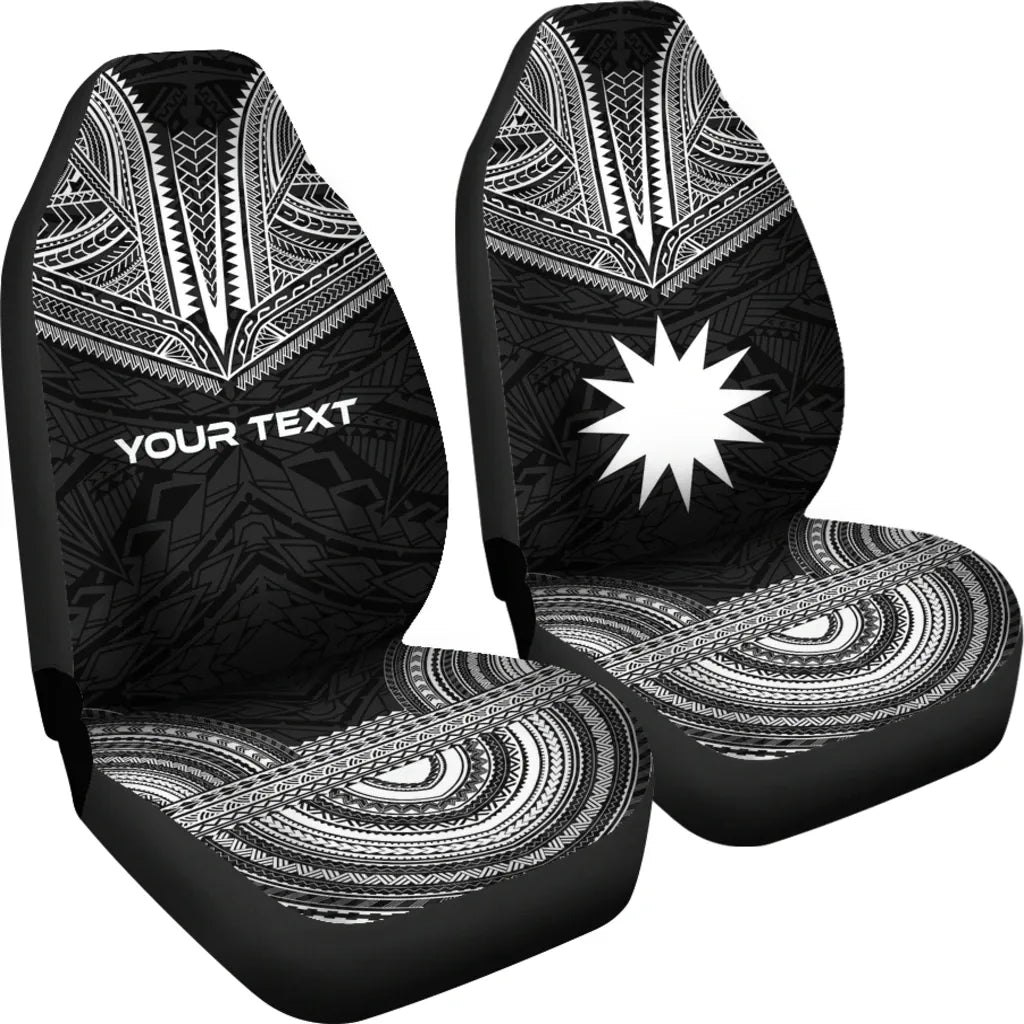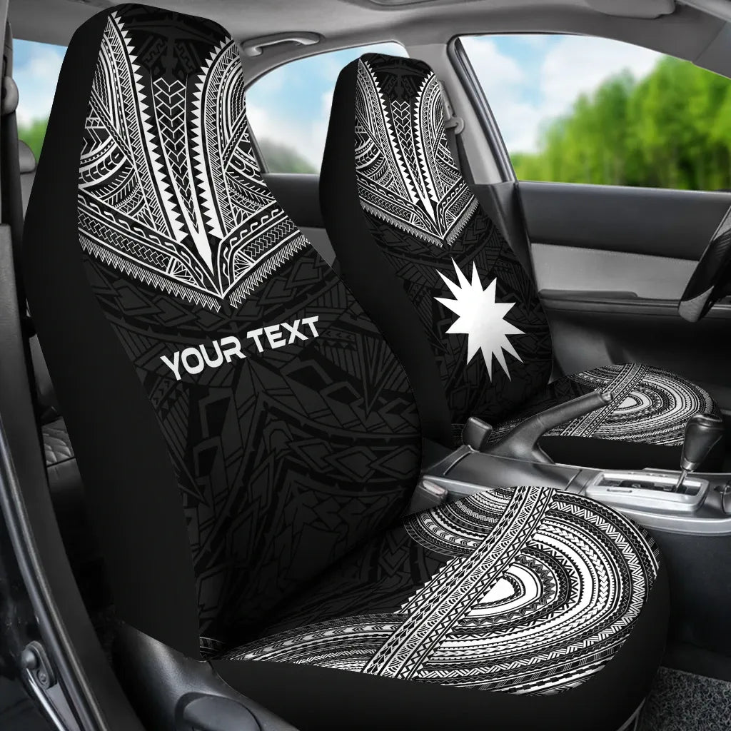 Nauru Custom Personalised Car Seat Cover - Nauru Flag Polynesian Chief Tattoo Black Version