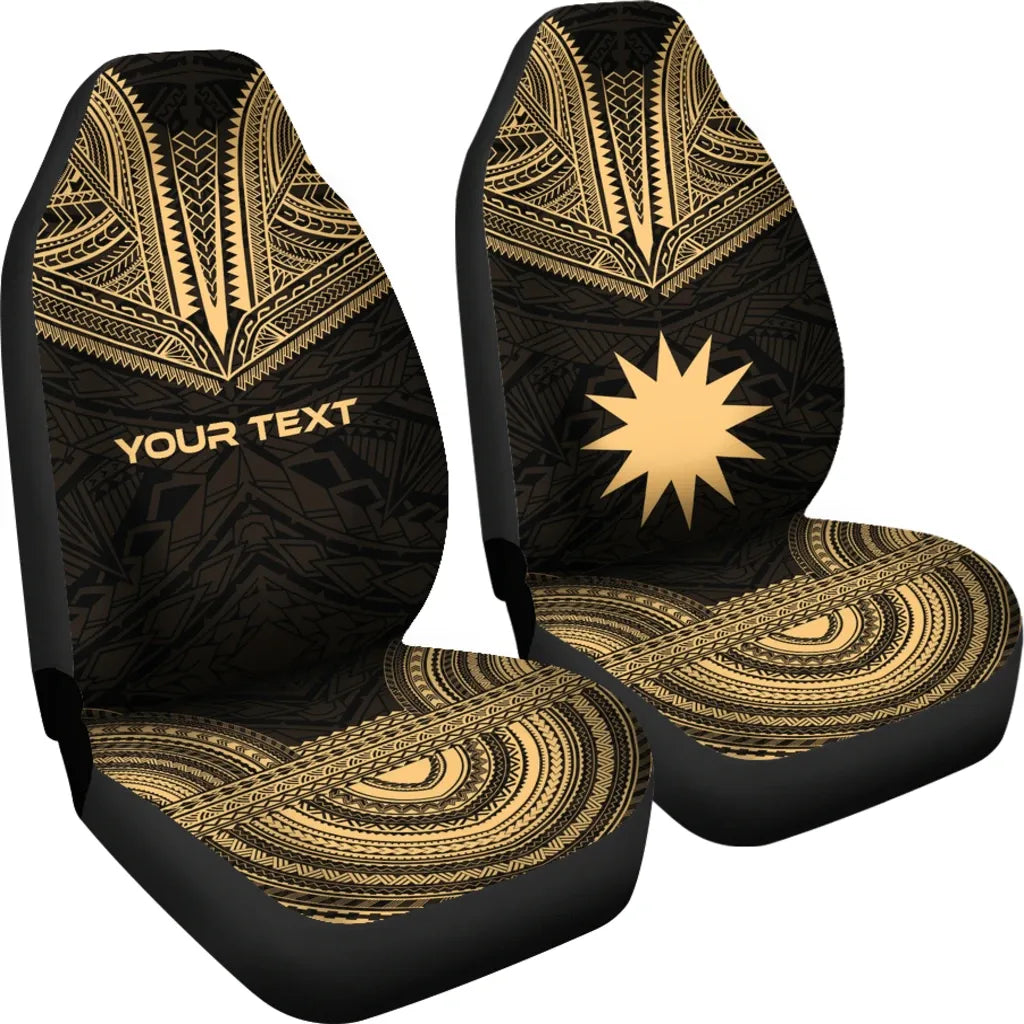 Nauru Custom Personalised Car Seat Cover - Nauru Flag Polynesian Chief Tattoo Gold Version