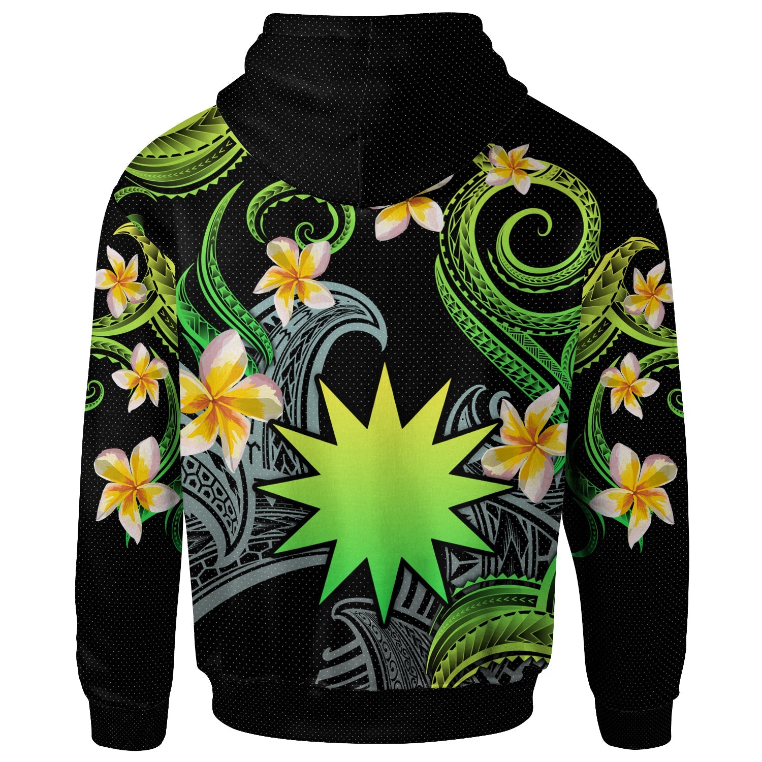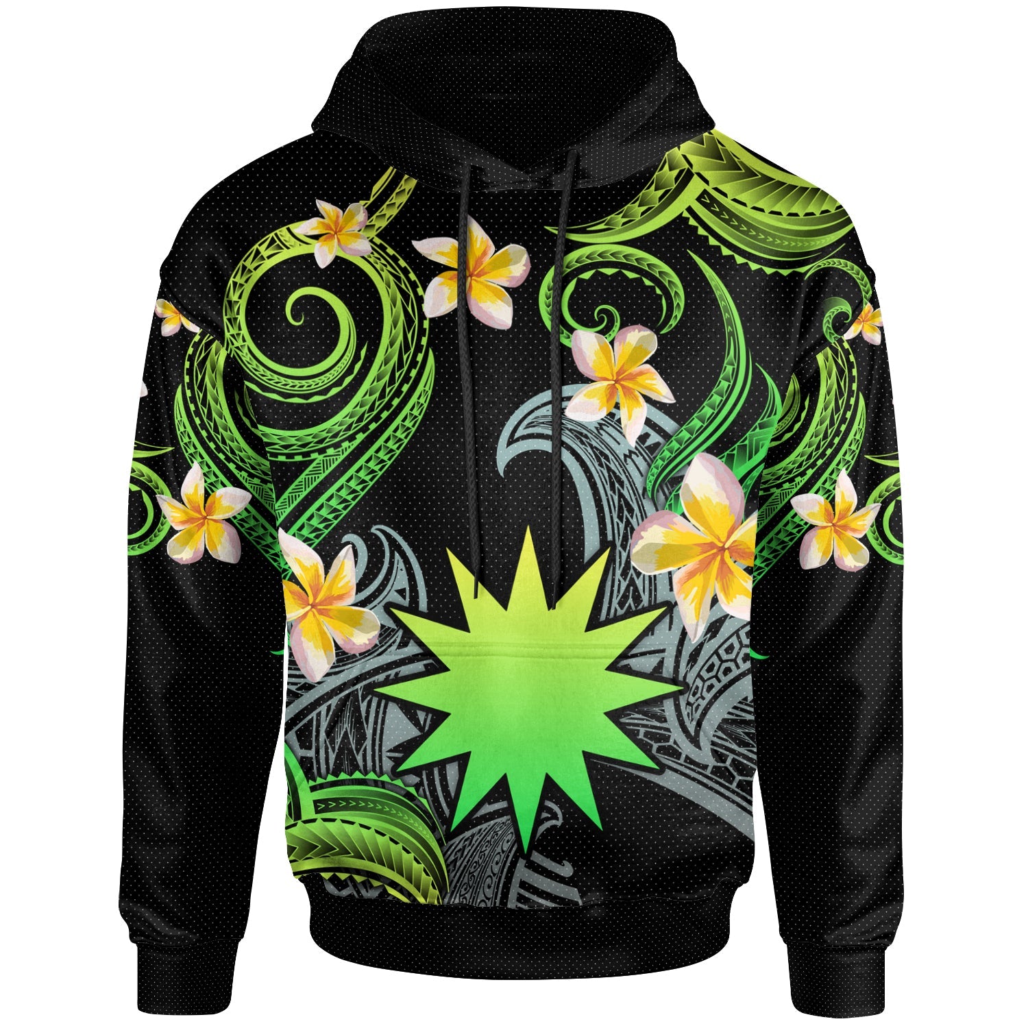 Nauru Hoodie - Custom Personalised Polynesian Waves with Plumeria Flowers (Green)