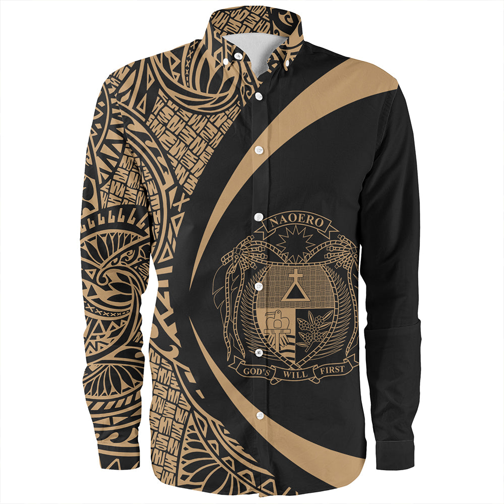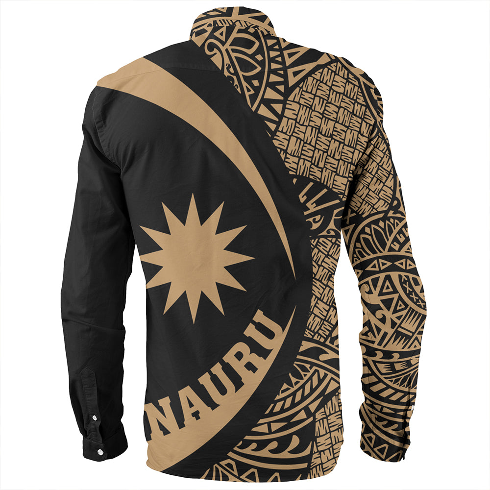 Nauru Long Sleeve Shirt Coat Of Arm Lauhala Gold Circle