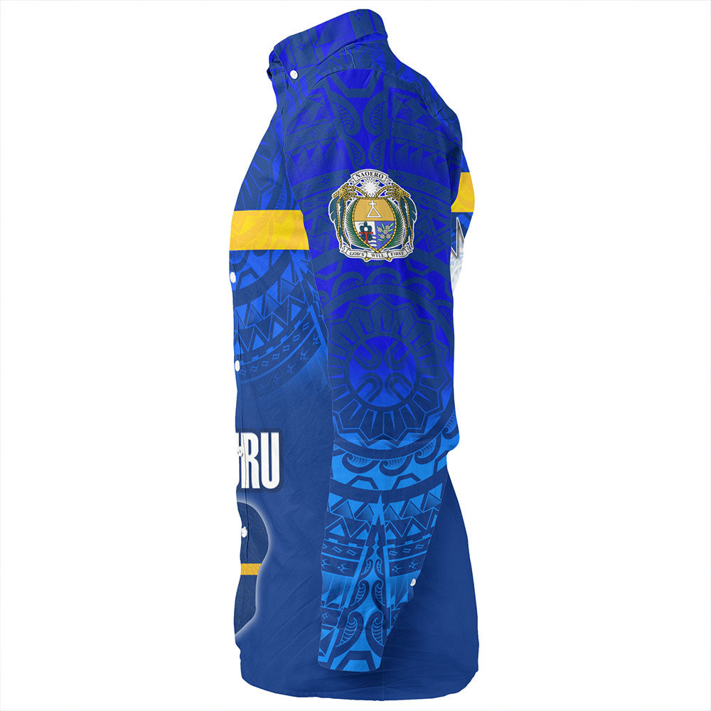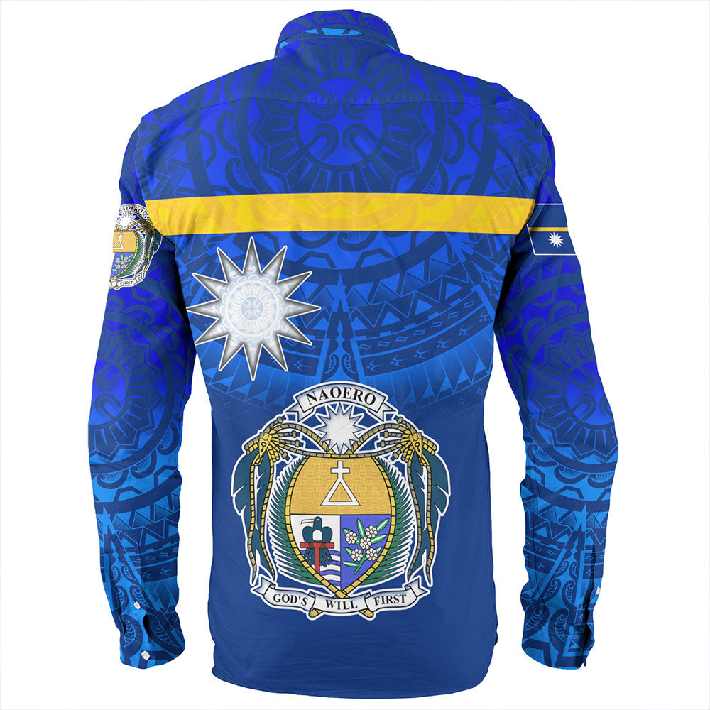 Nauru Long Sleeve Shirt Flag Color With Traditional Patterns