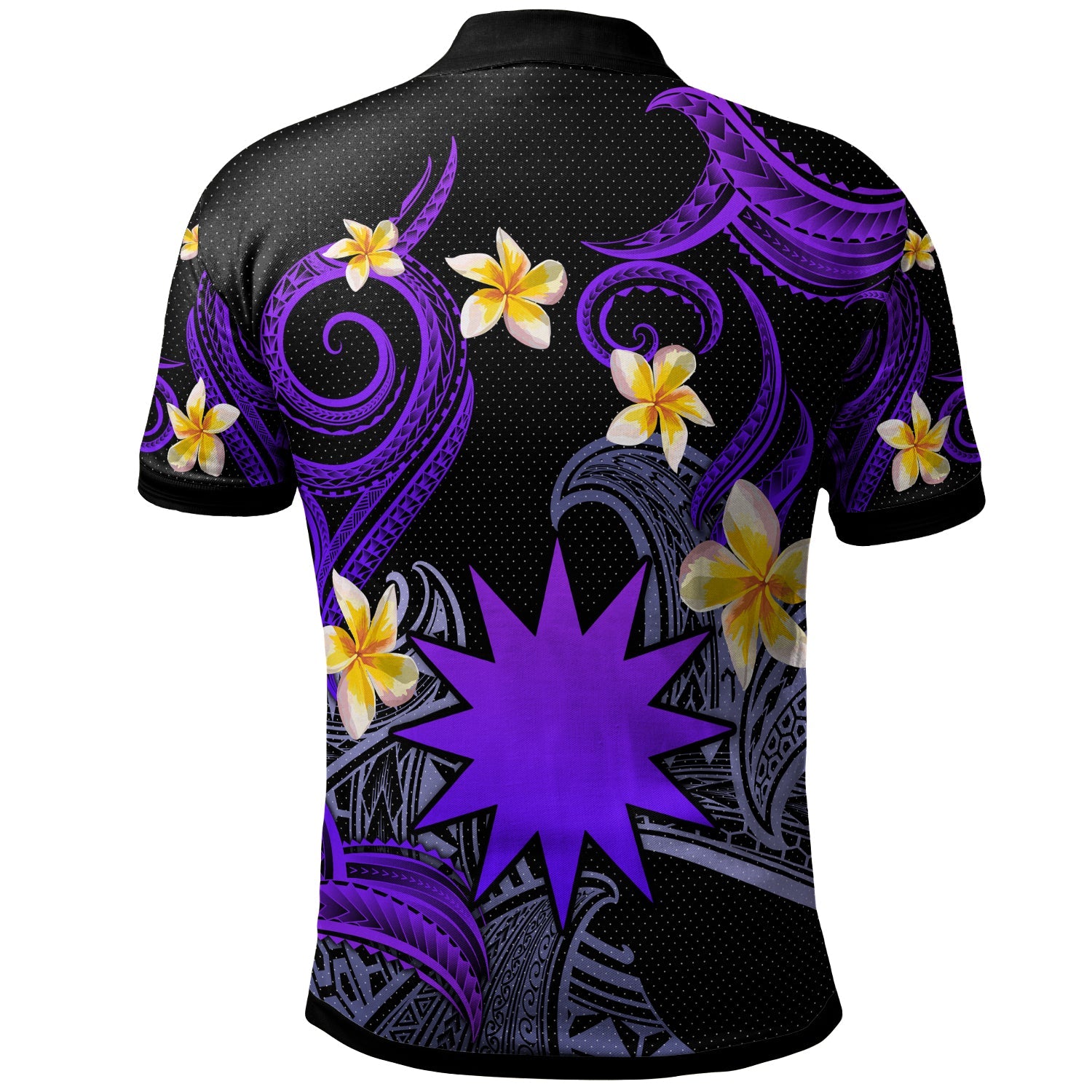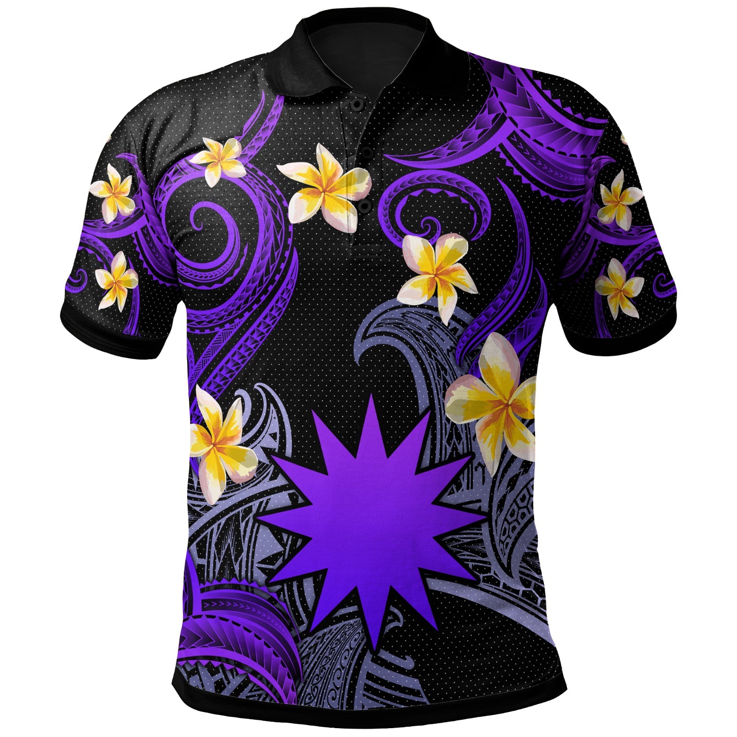 Nauru Polo Shirt - Custom Personalised Polynesian Waves with Plumeria Flowers (Purple)
