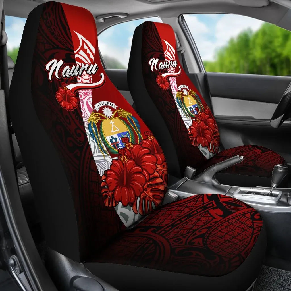 Nauru Polynesian Car Seat Covers - Coat Of Arm With Hibiscus