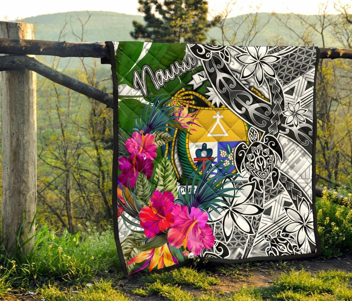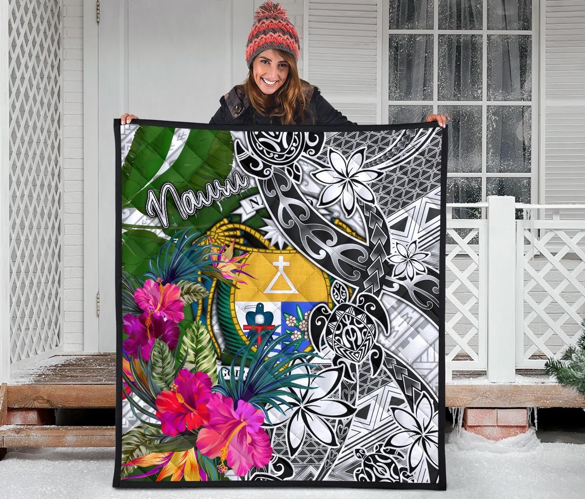 Nauru Premium Quilt White - Turtle Plumeria Banana Leaf Crest