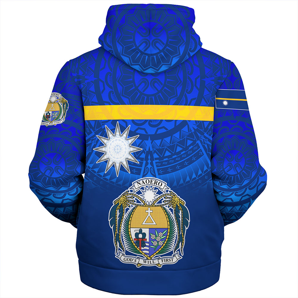 Nauru Sherpa Hoodie Flag Color With Traditional Patterns