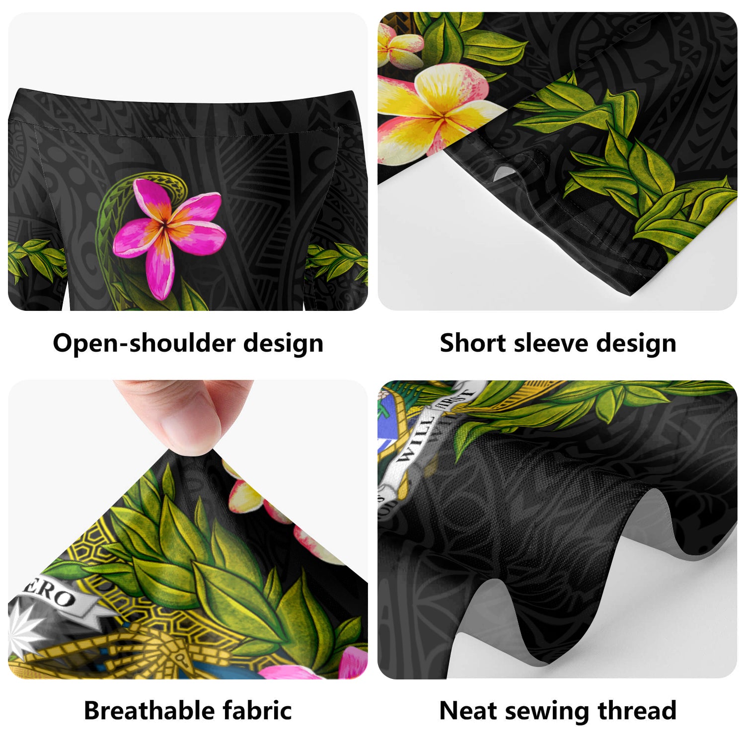 Nauru Short Sleeve Off The Shoulder Lady Dress Plumeria Tribal