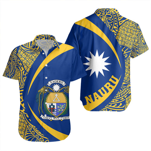 Nauru Short Sleeve Shirt Coat Of Arm Lauhala Circle