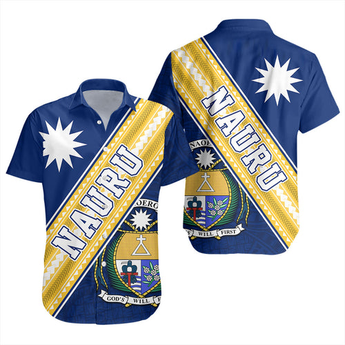 Nauru Short Sleeve Shirt Flag And Coat Of Arms