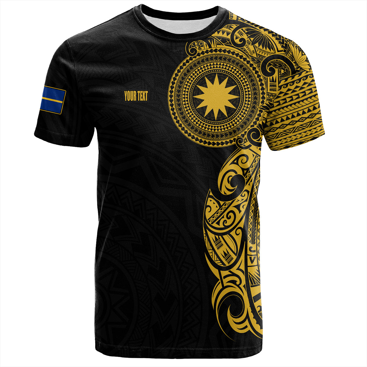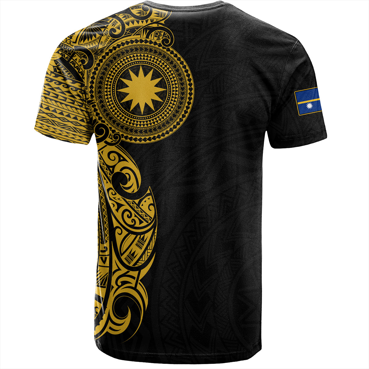 Nauru T-Shirt Custom Polynesian Half Sleeve Gold Tattoo With Seal Black