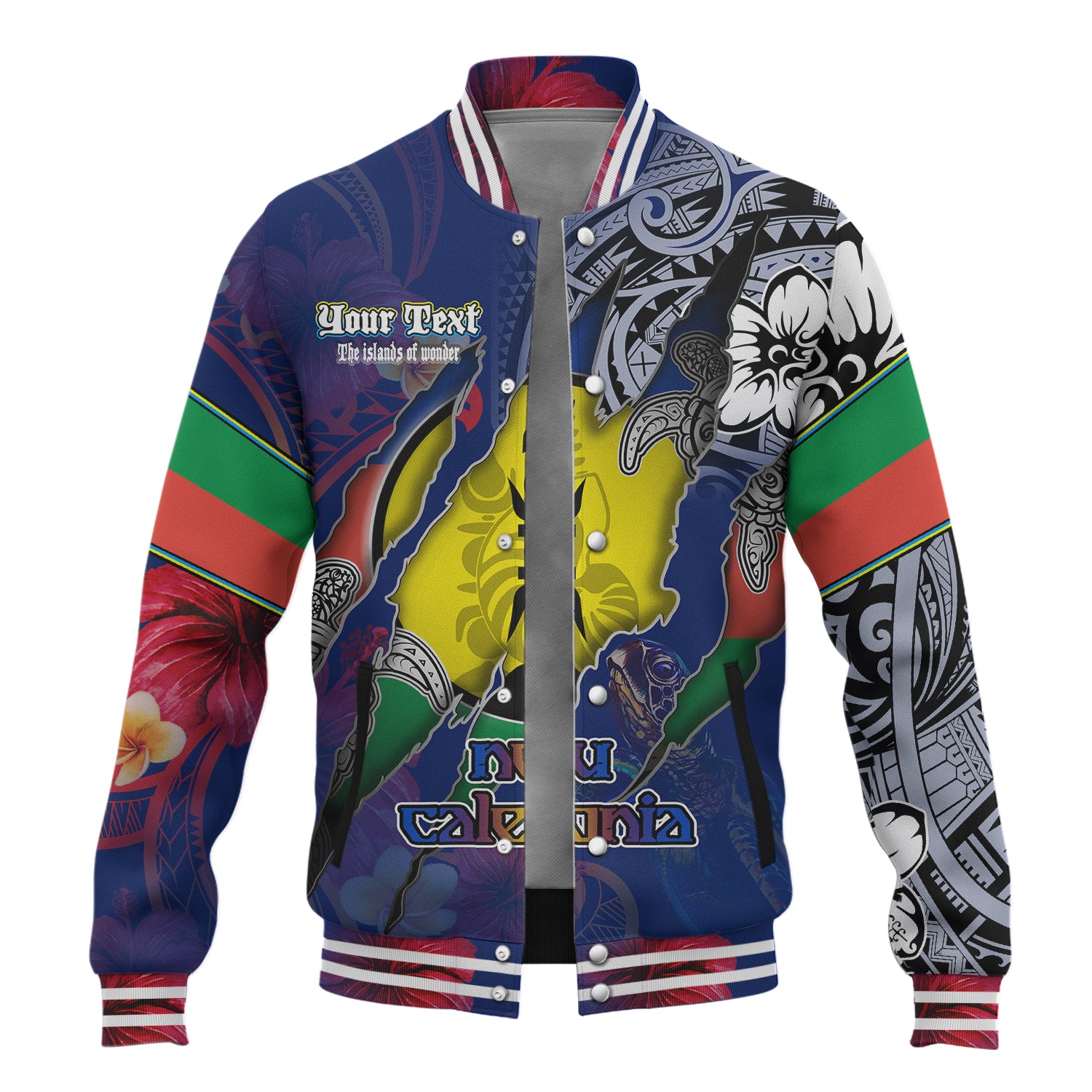 New Caledonia Baseball Jacket Custom New Caledonian Blood Inside Me Polynesian Sleeve Tattoo Tropical Blue