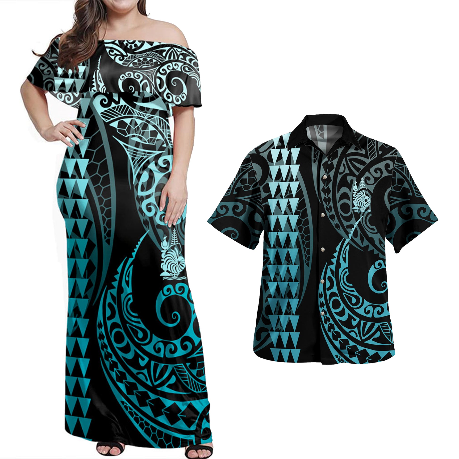 New Caledonia Combo Dress And Shirt Kakau Style Turquoise