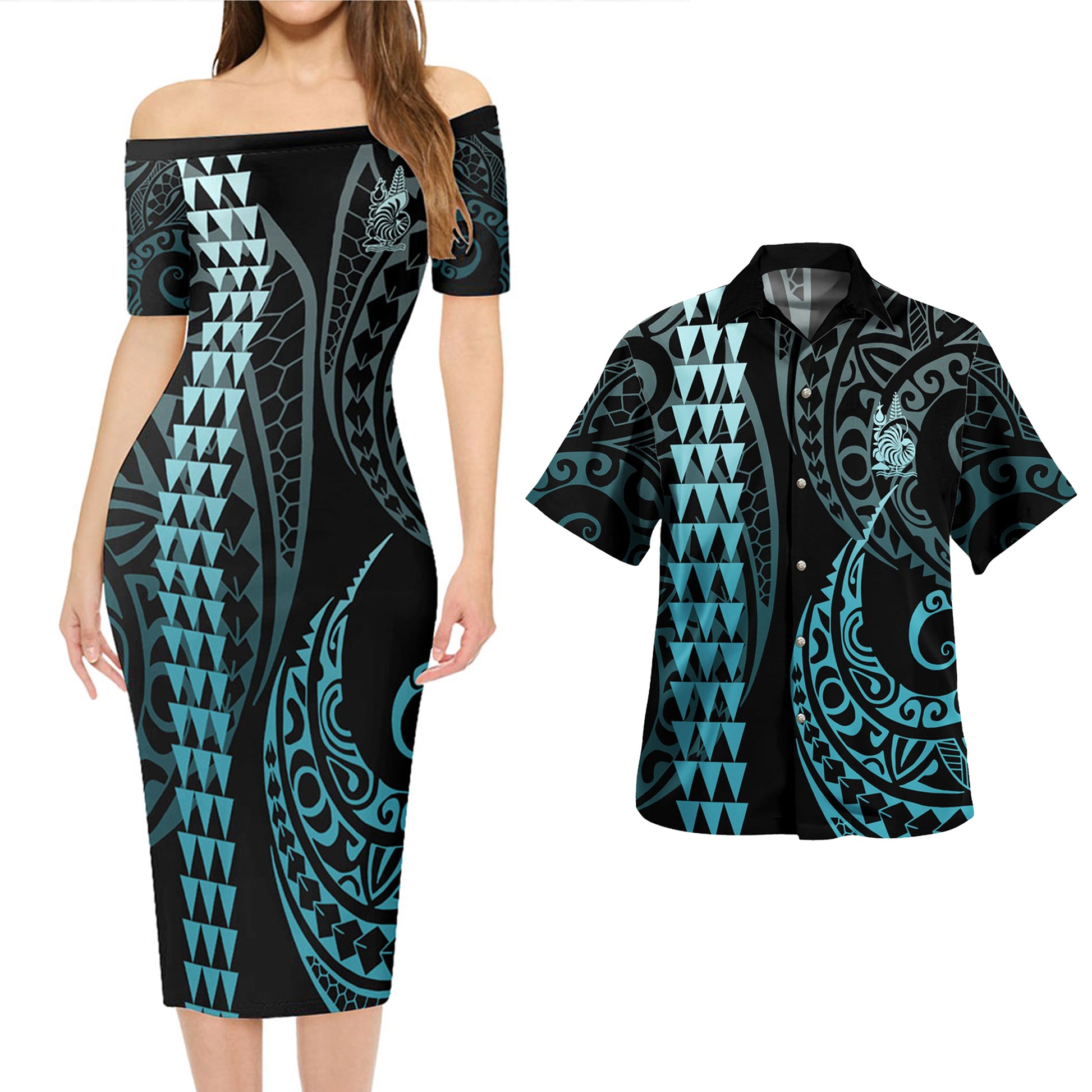 New Caledonia Combo Short Sleeve Dress And Shirt Kakau Style Turquoise