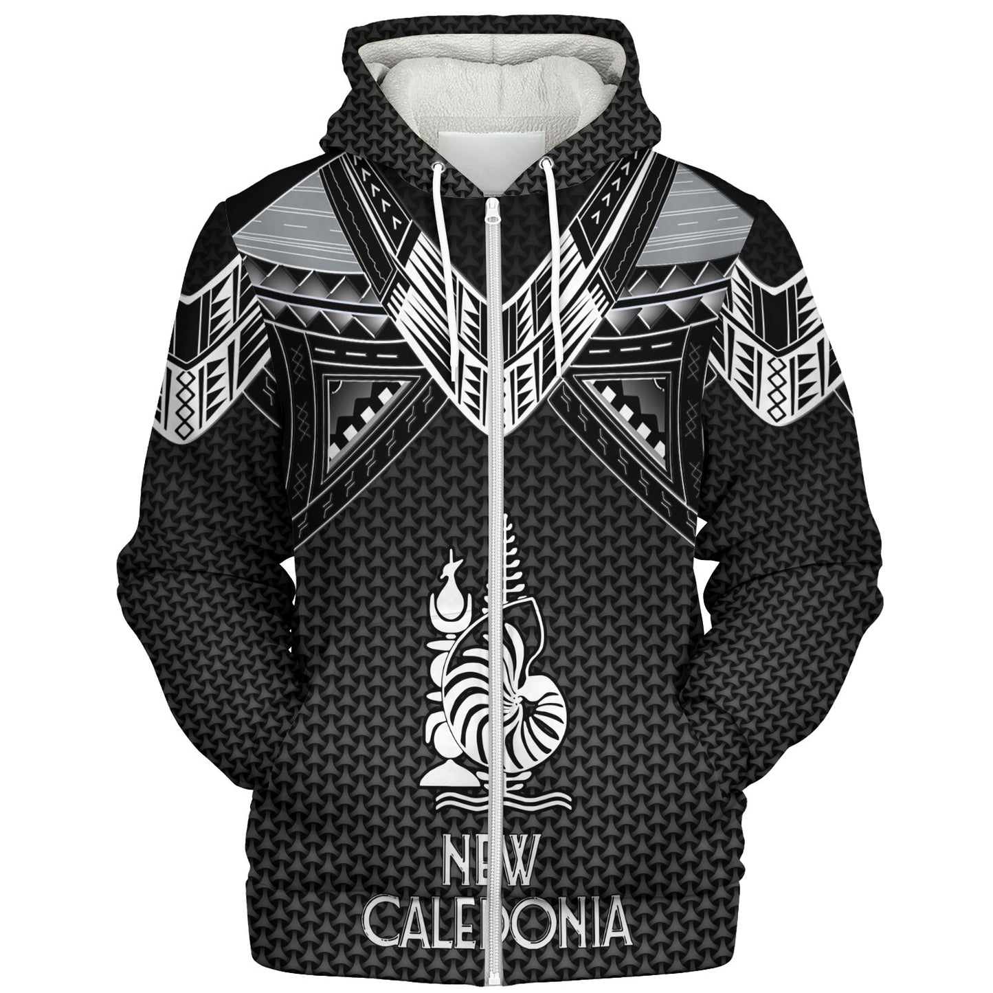 New Caledonia Sherpa Hoodie Polynesian Tribal Tattoo