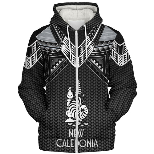 New Caledonia Custom Personalised Sherpa Hoodie Polynesian Tribal Tattoo