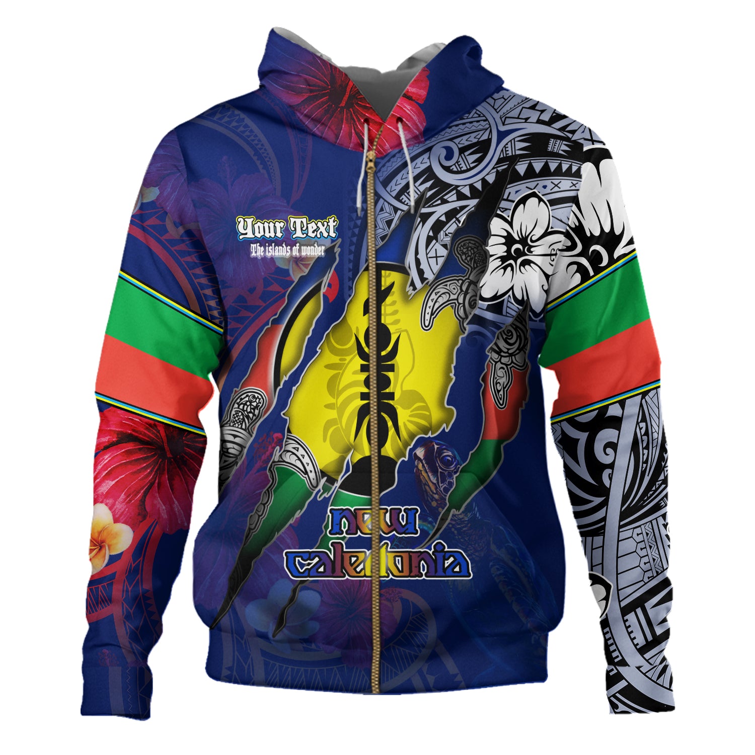 New Caledonia Hoodie Custom New Caledonian Blood Inside Me Polynesian Sleeve Tattoo Tropical Blue