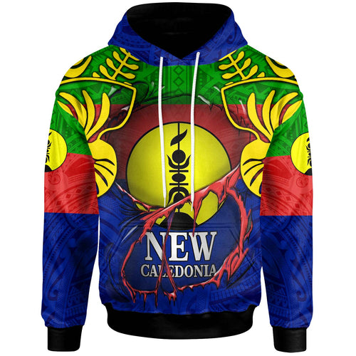 New Caledonia Hoodie - Custom Personalised Coat of Arms Ripping with Polynesian Hoodie