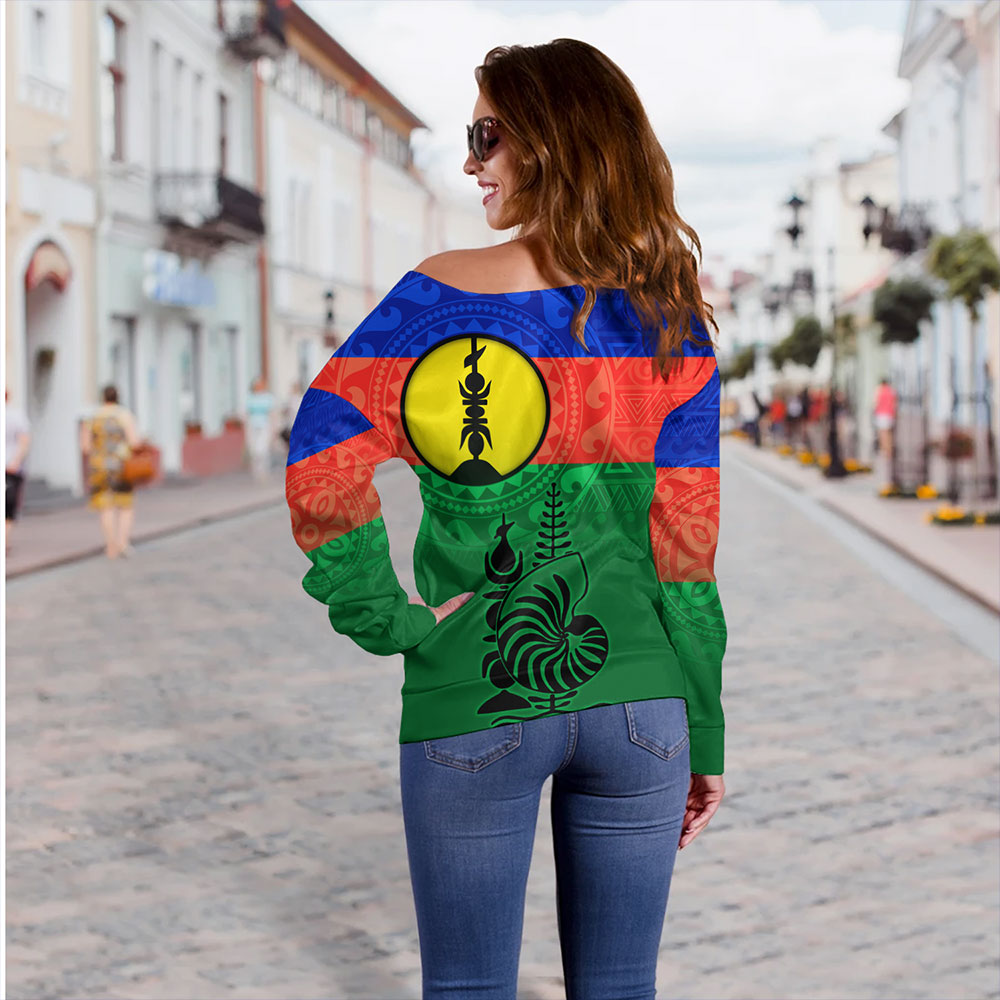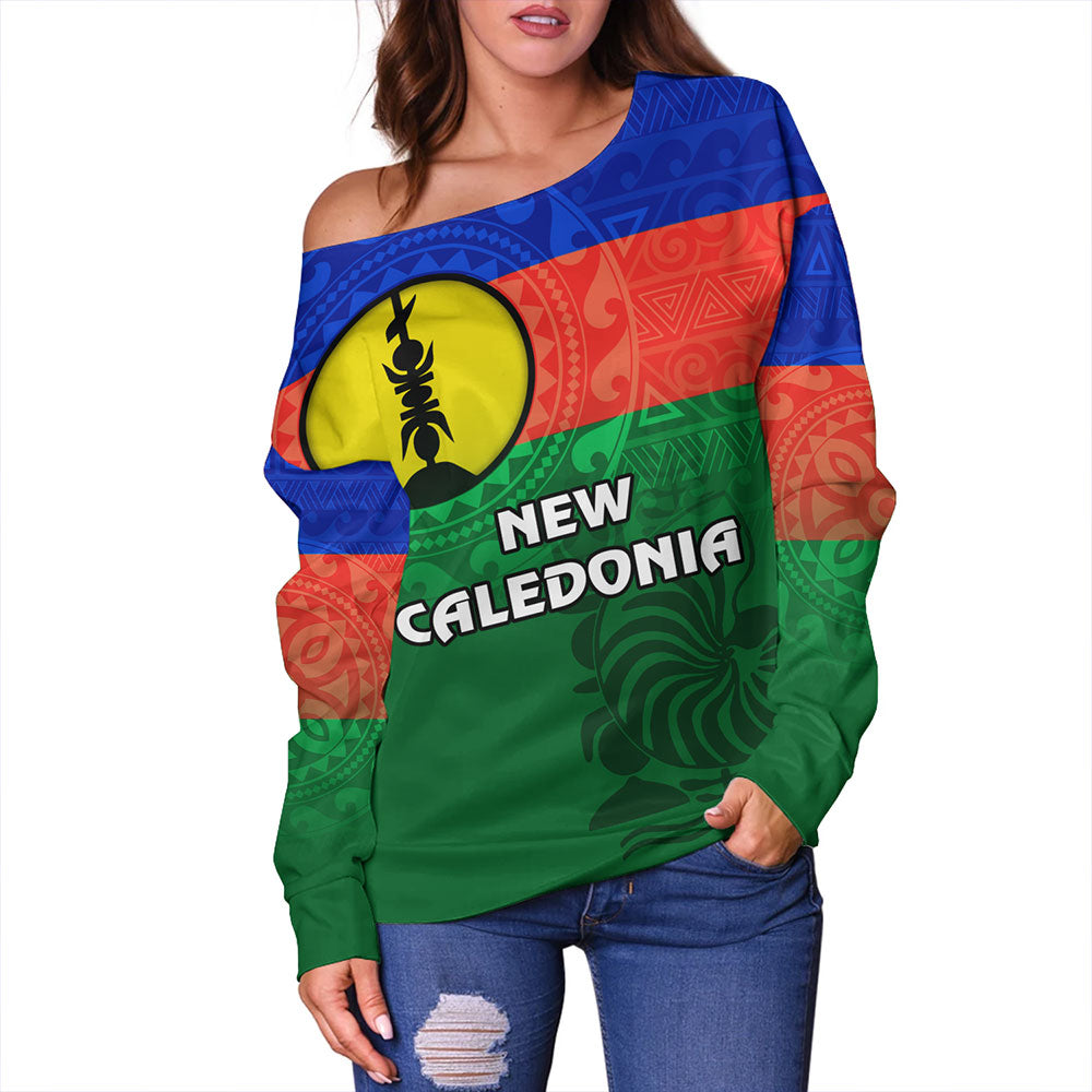 New Caledonia Off Shoulder Sweatshirt Flag Color With Traditional Patterns