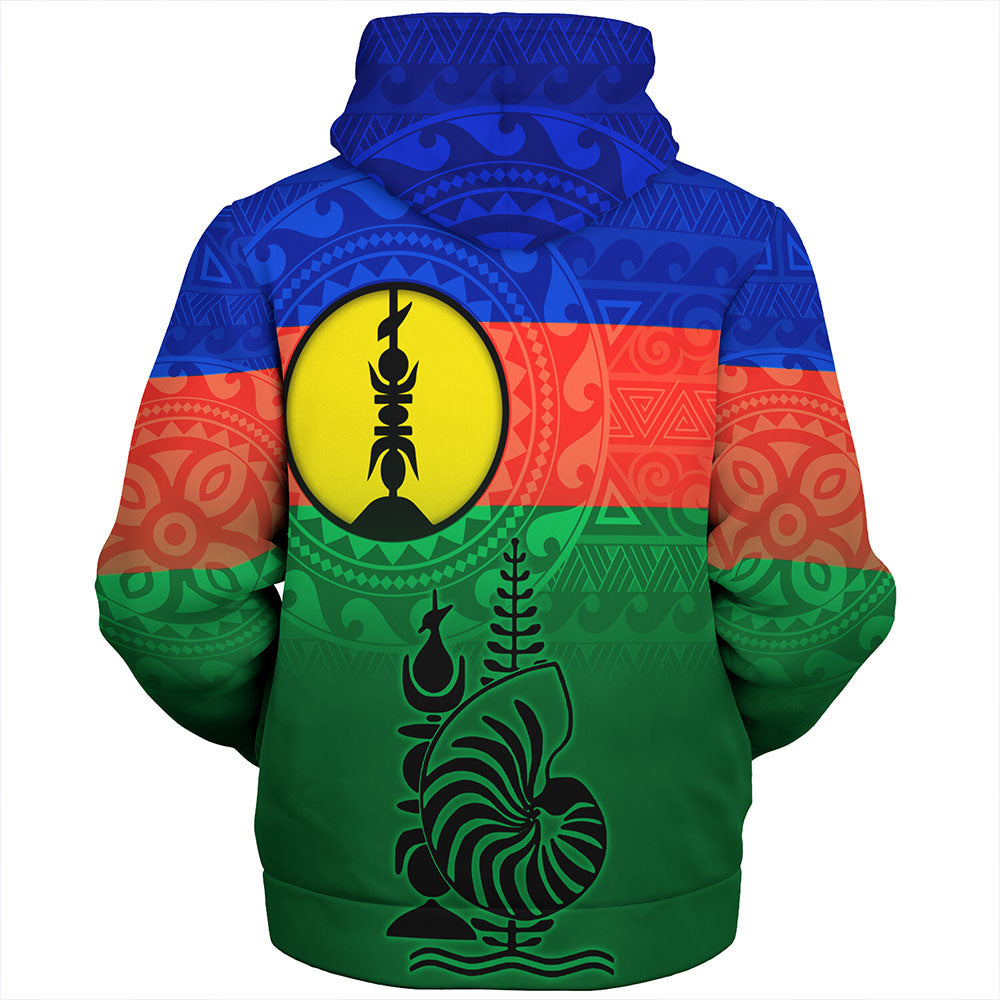 New Caledonia Sherpa Hoodie Flag Color With Traditional Patterns