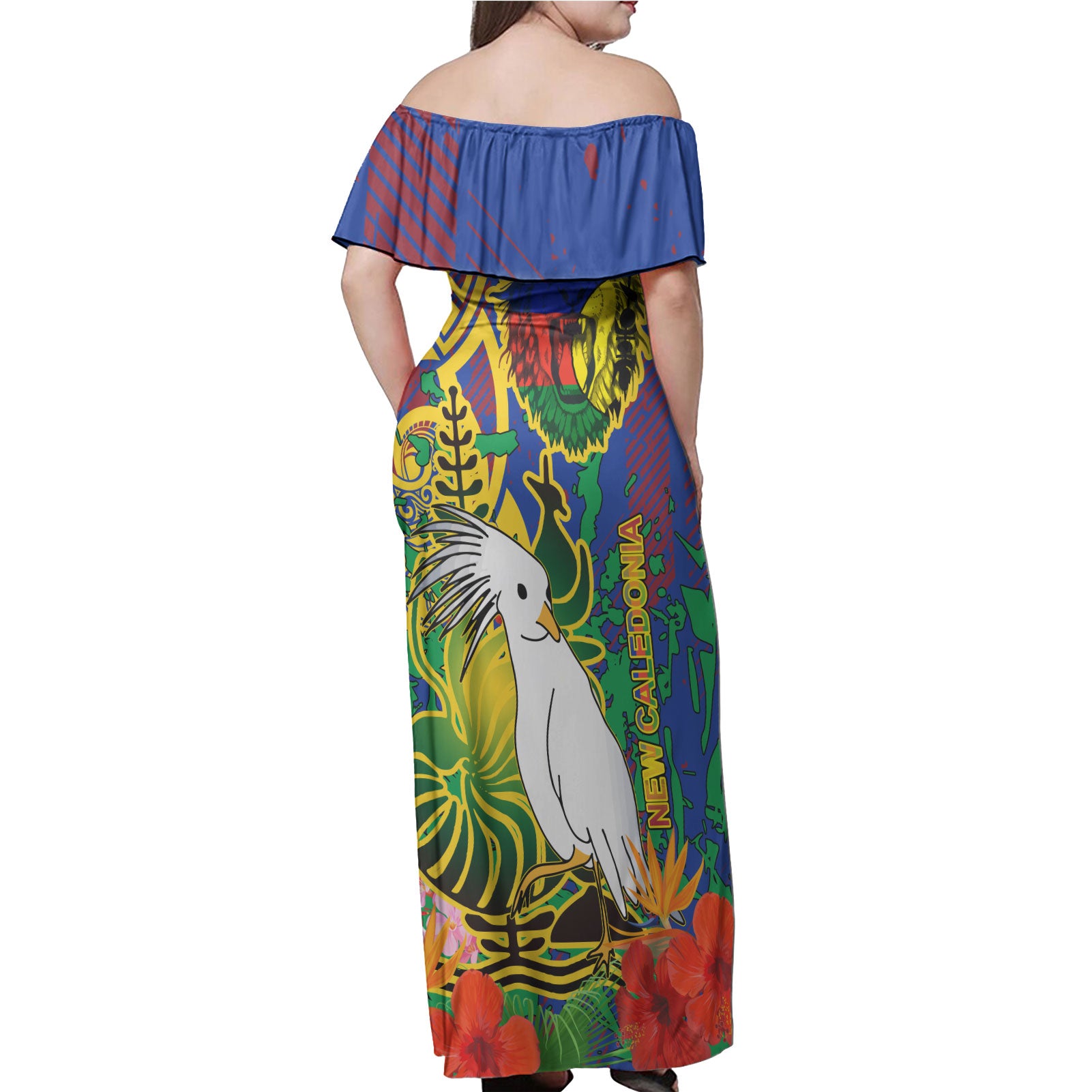 New Caledonia Woman Off Shoulder Long Dress - Custom New Caledonia National Emblem With Cagou And Hibiscus Polynesian