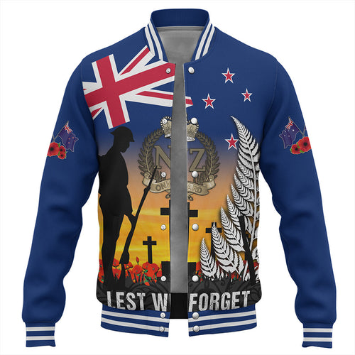 New Zealand Baseball Jacket Anzac Army And Maori Silver Fern Poppy Sunset Style