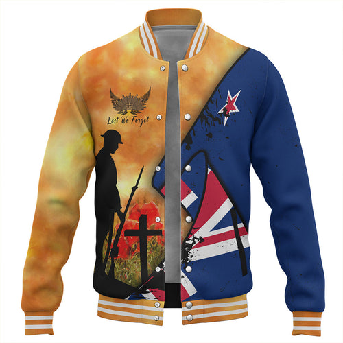 New Zealand Baseball Jacket Anzac Day Flag Lest We Forget