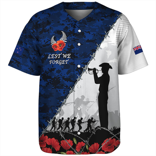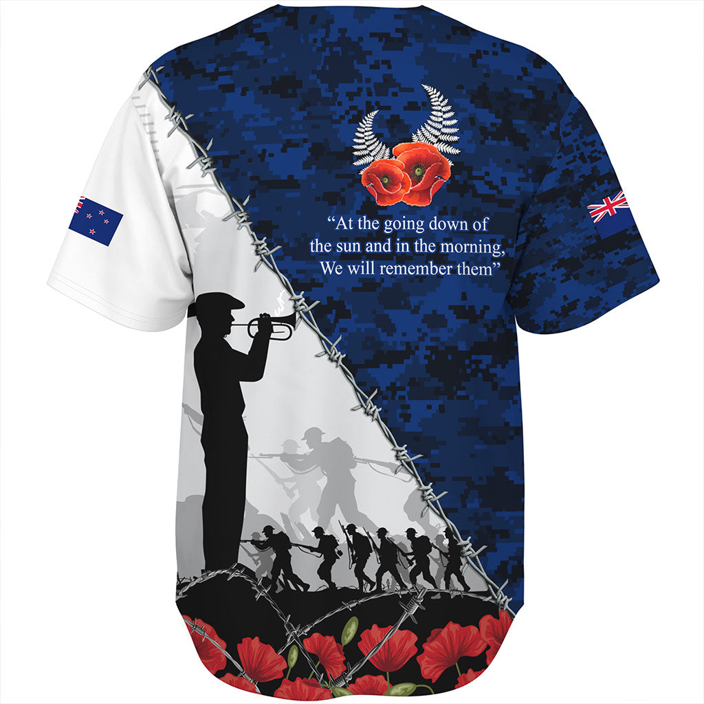 New Zealand Baseball Shirt Anzac Day Poppy Flower And Barbed Wire
