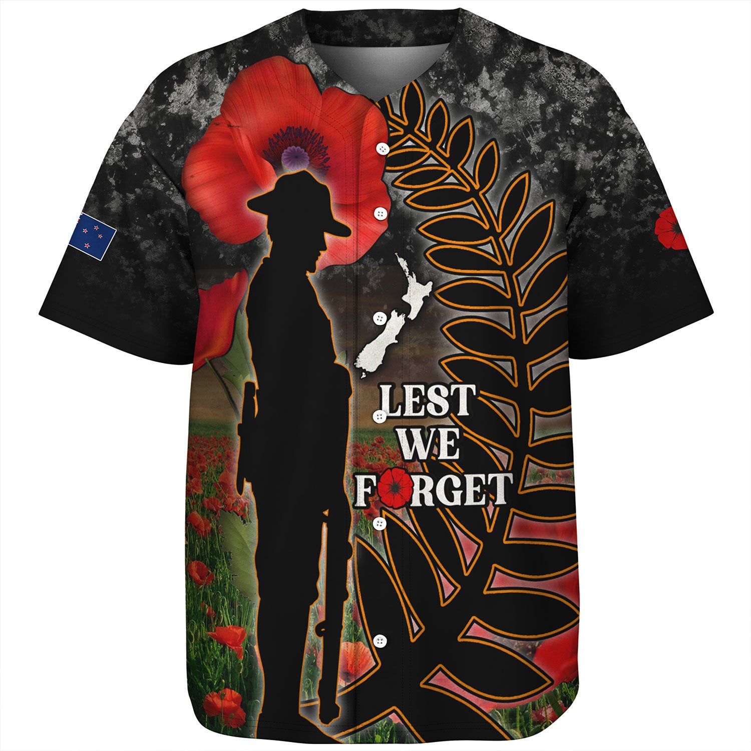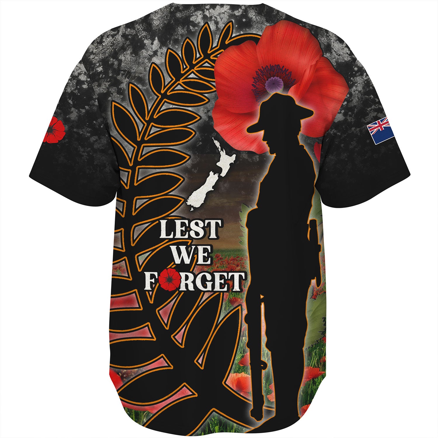 New Zealand Baseball Shirt Custom Anzac Day Lest We Forget Silver Fern