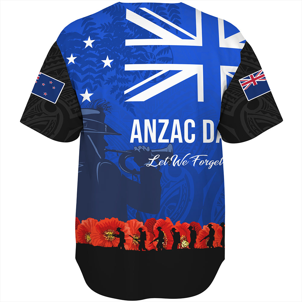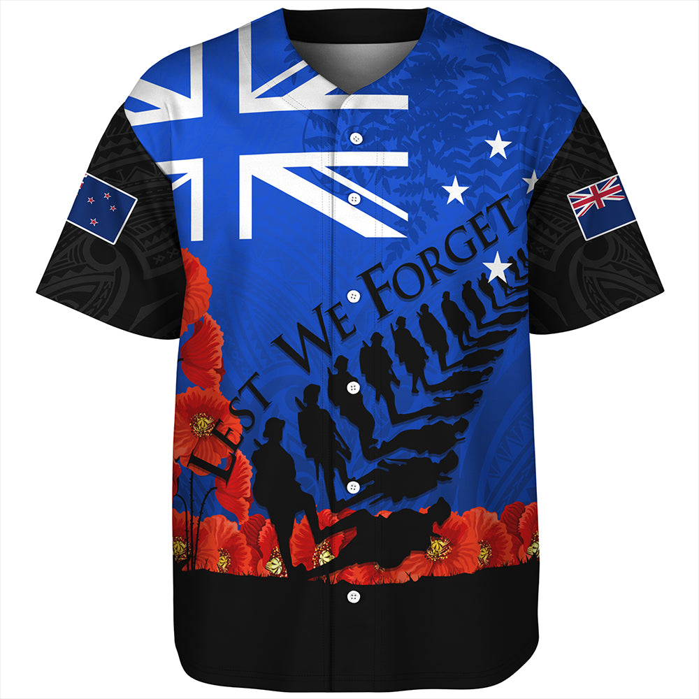 New Zealand Baseball Shirt Flag Anzac Day And Red Poppy