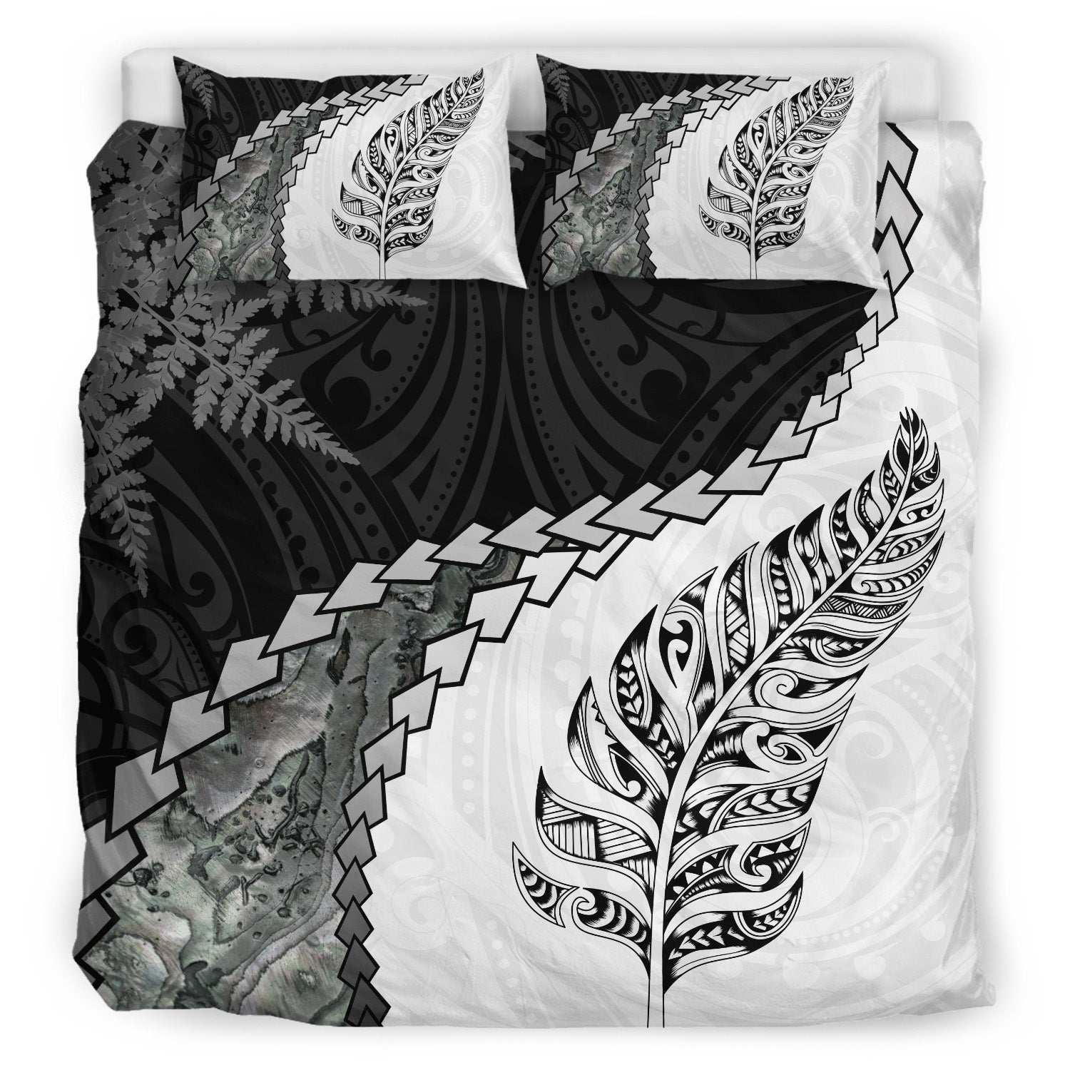 New Zealand Bedding Set Silver Fern Maori Pattern
