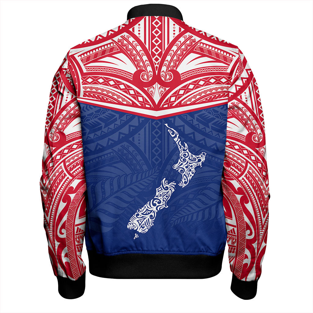 New Zealand Bomber Jacket Flag With Map And Maori Pattern
