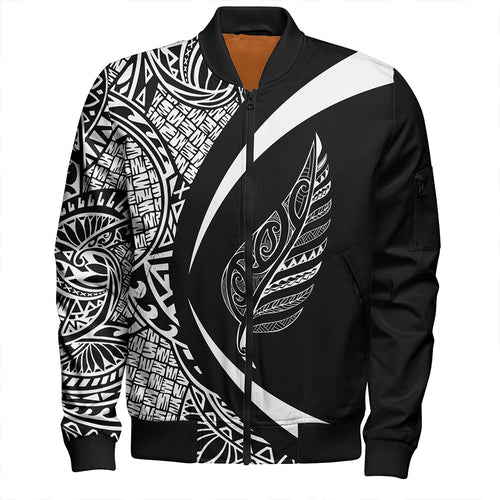 New Zealand Bomber Jacket Silver Fern Lauhala White Circle