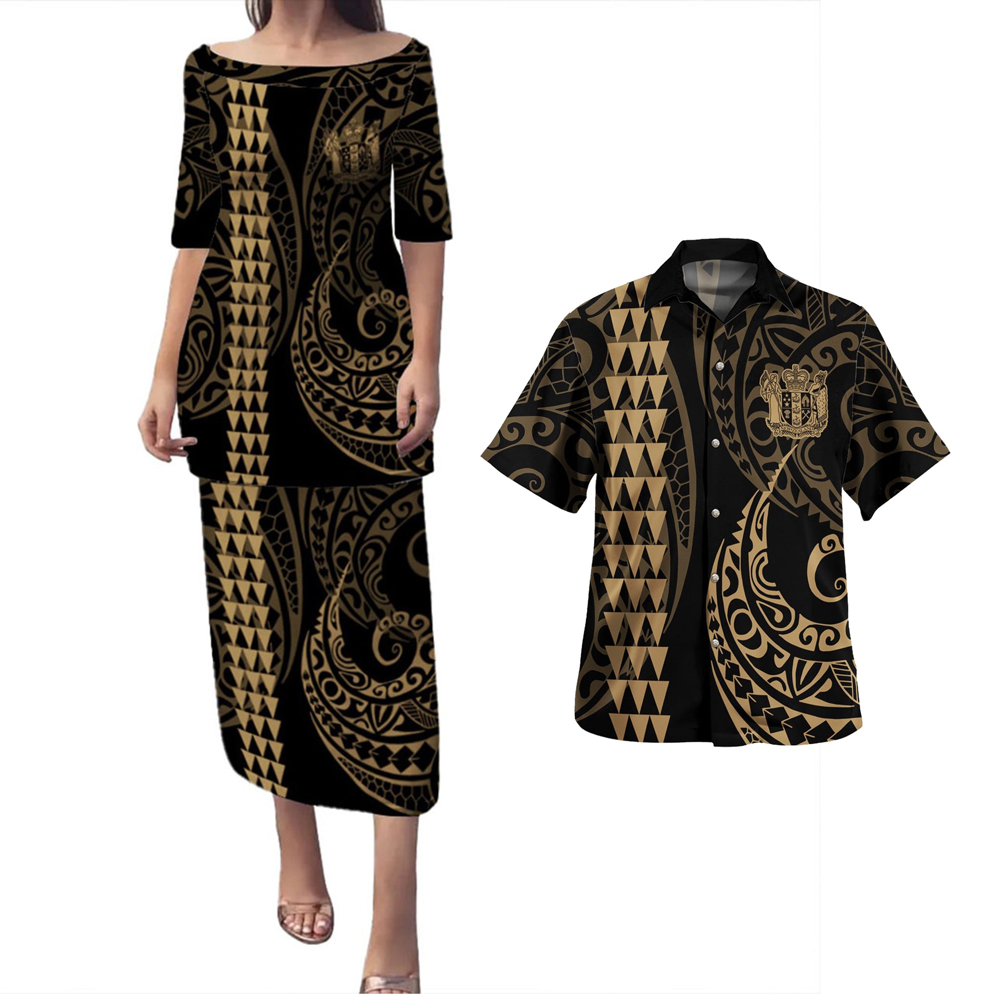 New Zealand Combo Puletasi And Shirt Kakau Style Gold