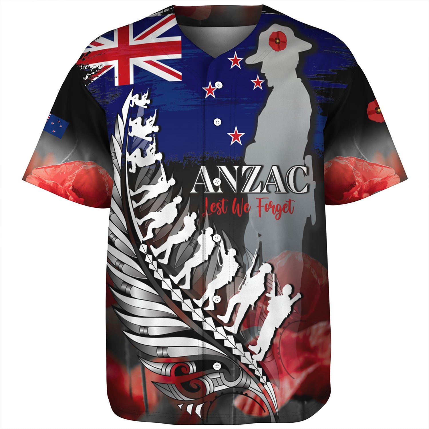 New Zealand Baseball Shirt Anzac Day Silver Fern Flag Style
