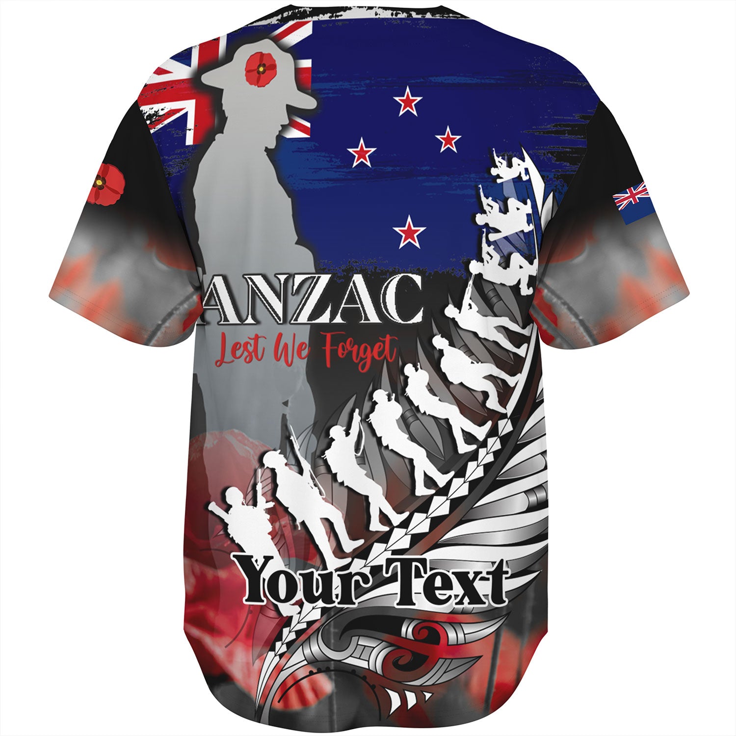 New Zealand Custom Personalised Baseball Shirt Anzac Day Silver Fern Flag Style