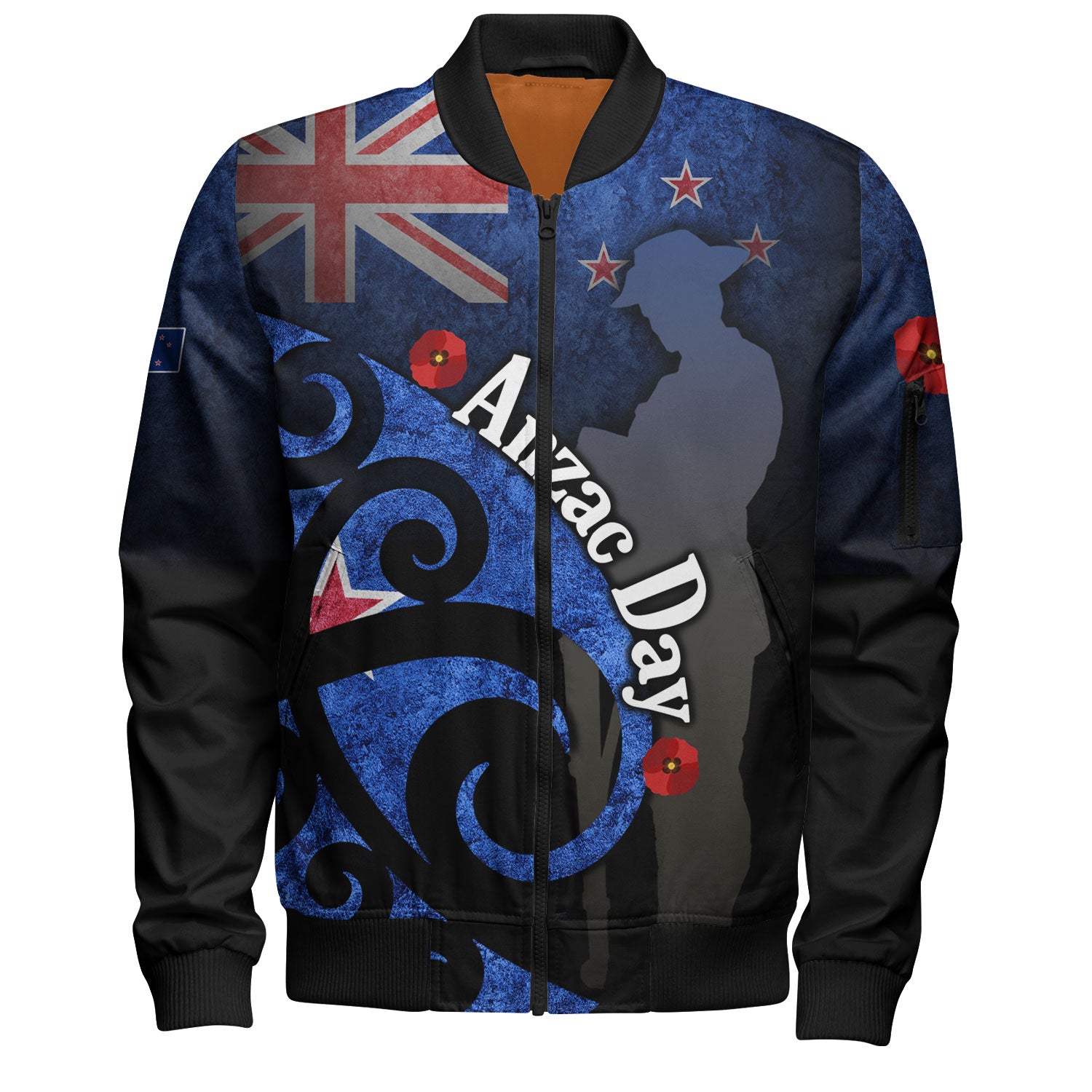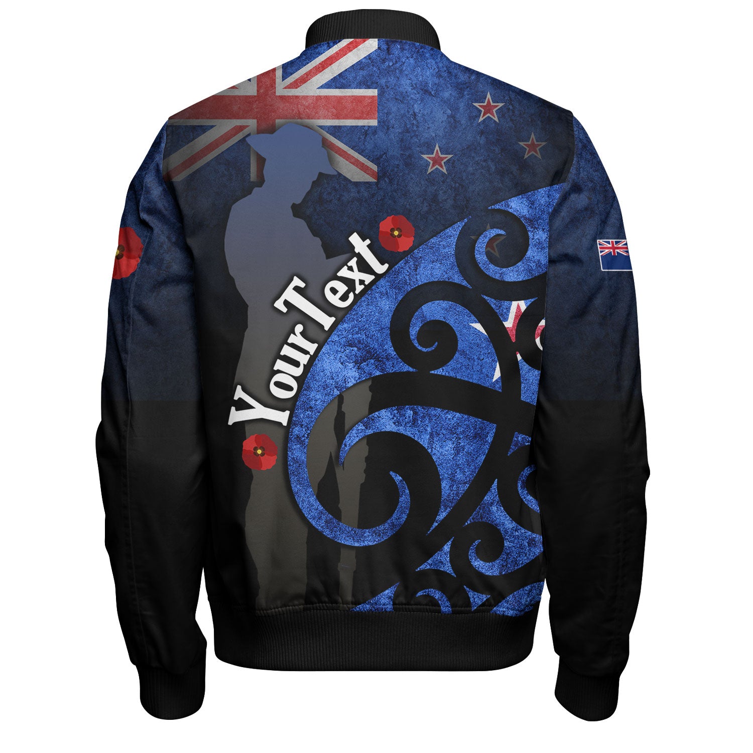 New Zealand Custom Personalised Bomber Jacket Anzac Day Flag Maori Patterns