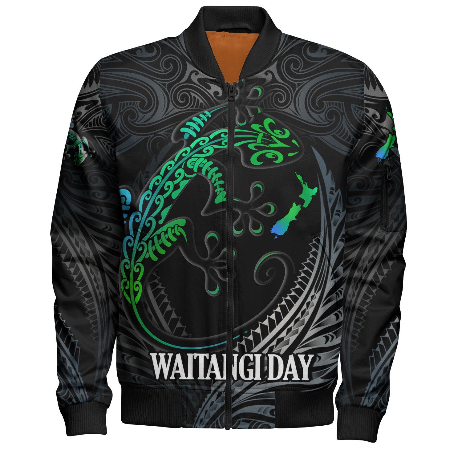 New Zealand Bomber Jacket Waitangi Day Ethnic Lizard Maori Patterns