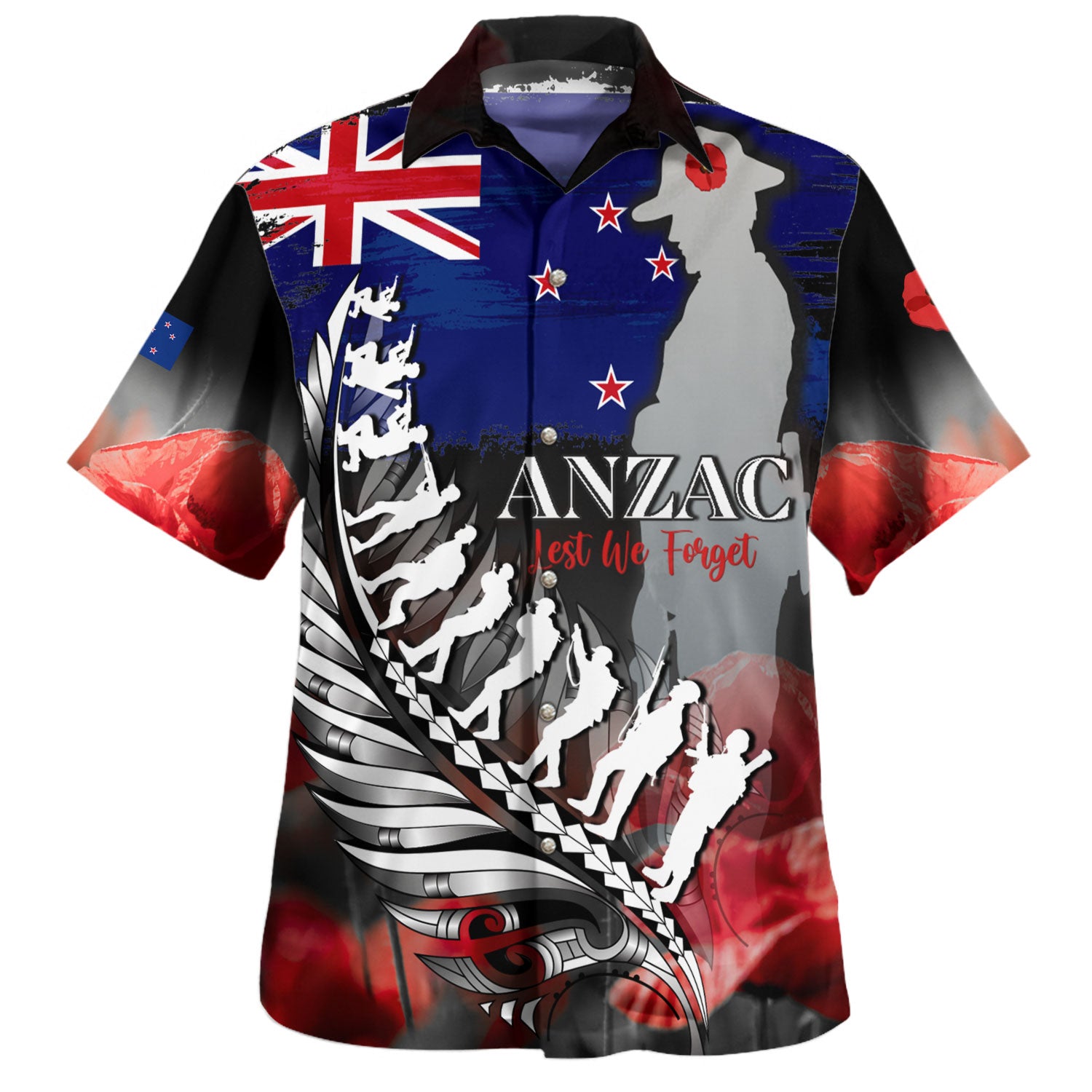New Zealand Hawaiian Shirt Anzac Day Silver Fern Flag Style