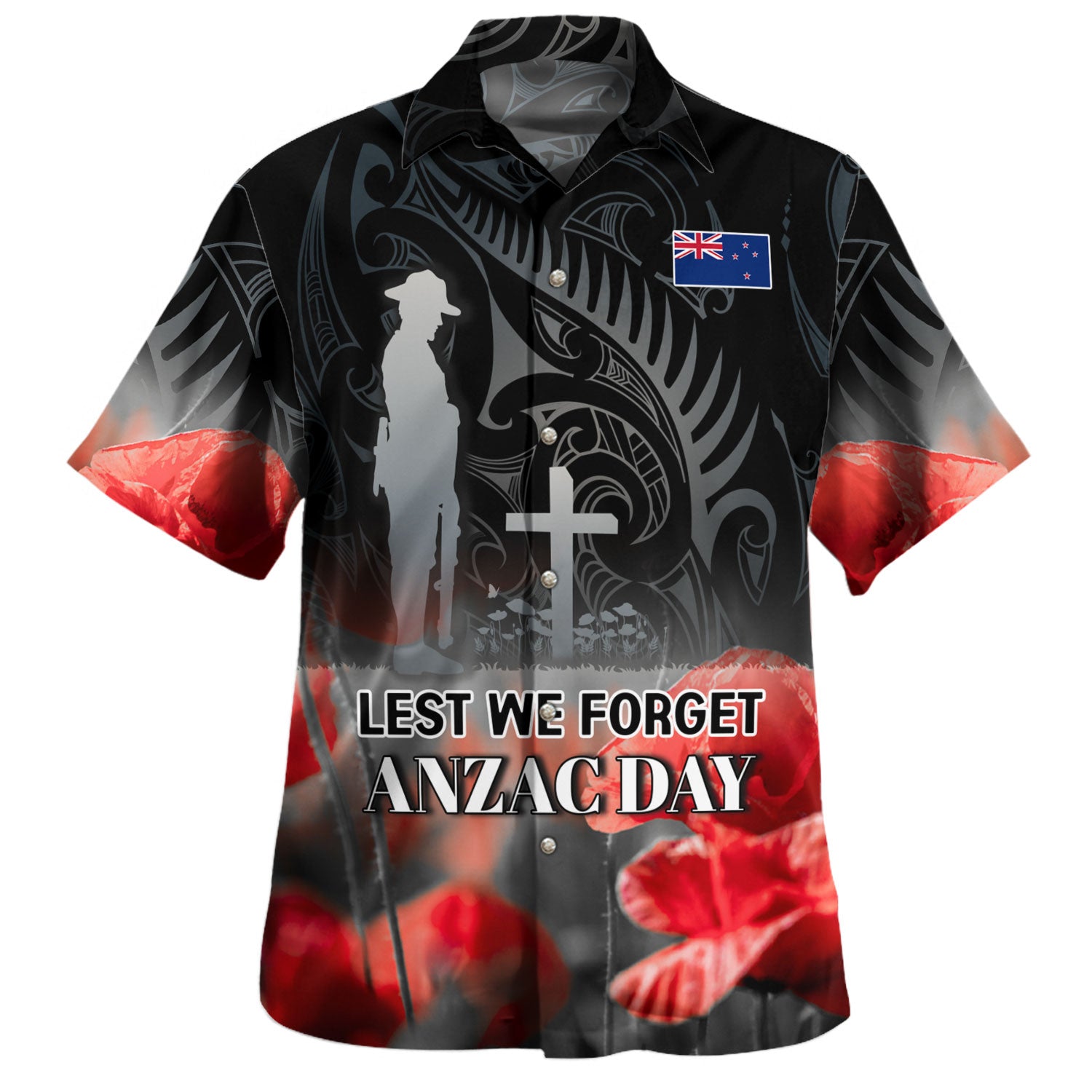New Zealand Hawaiian Shirt Anzac Day Silver Fern Maori Style
