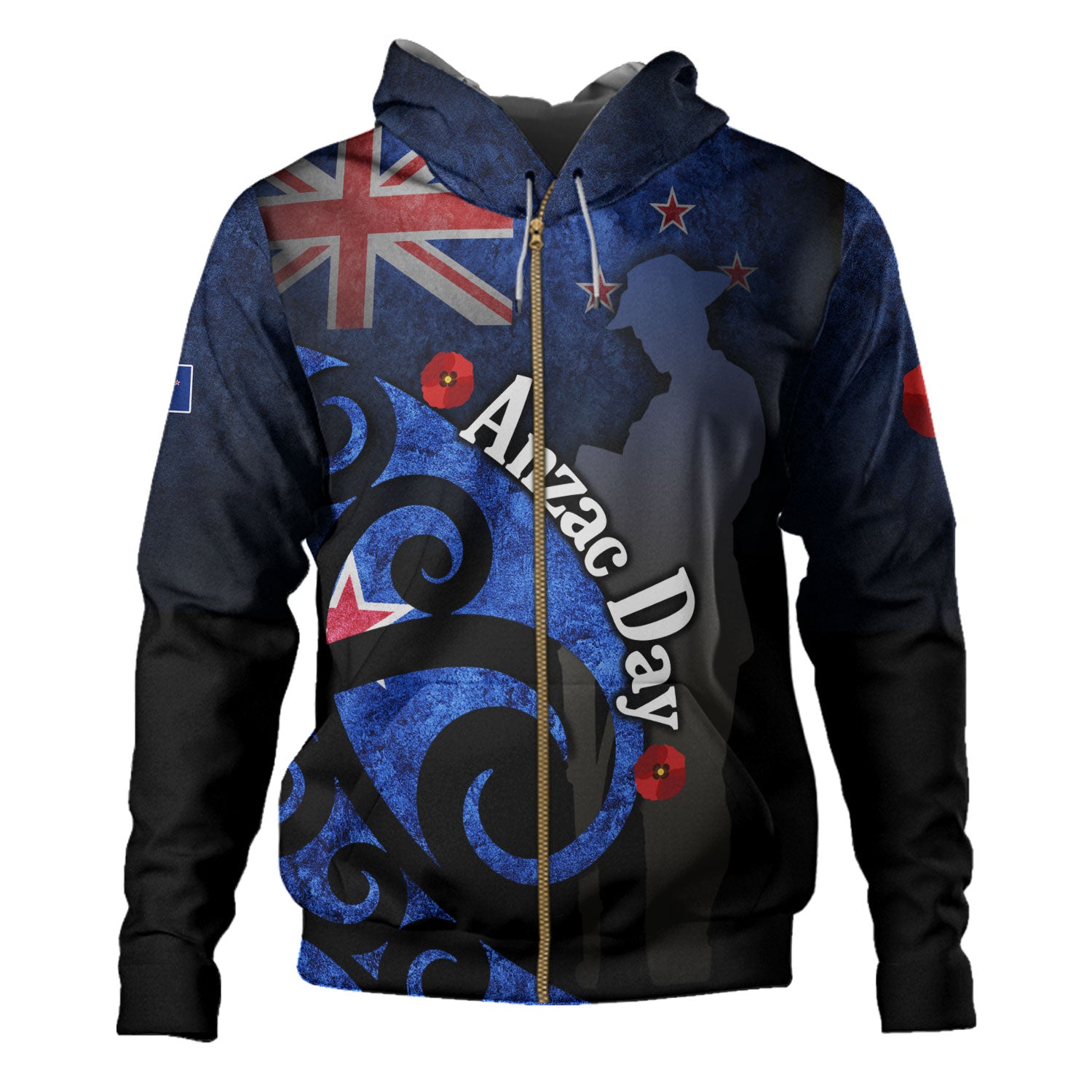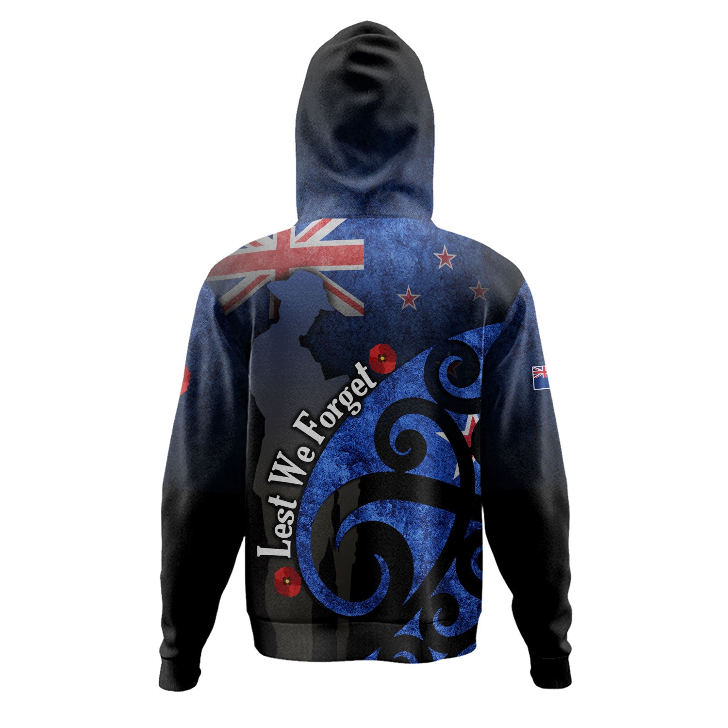 New Zealand Hoodie Anzac Day Flag Maori Patterns