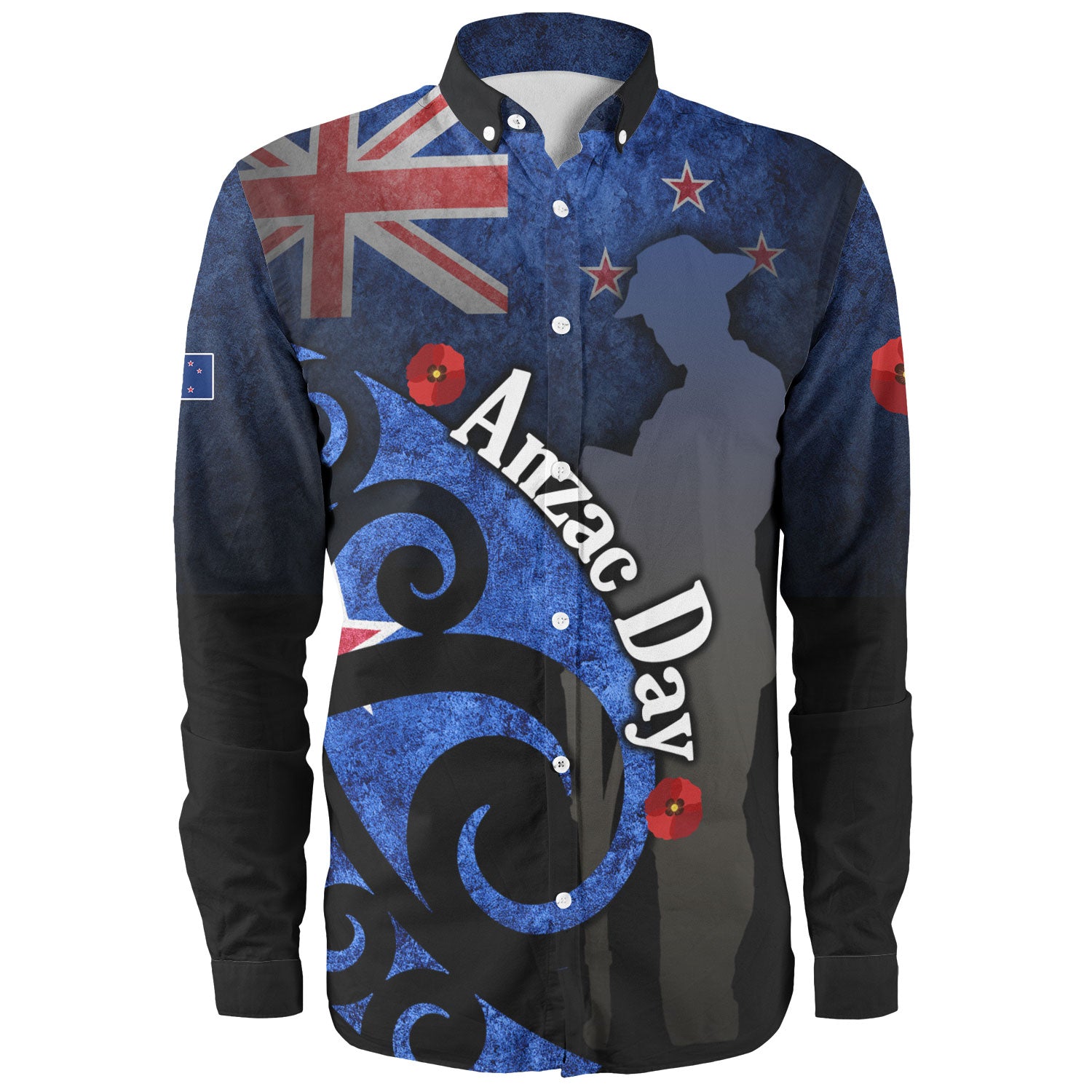 New Zealand Long Sleeve Shirt Anzac Day Flag Maori Patterns