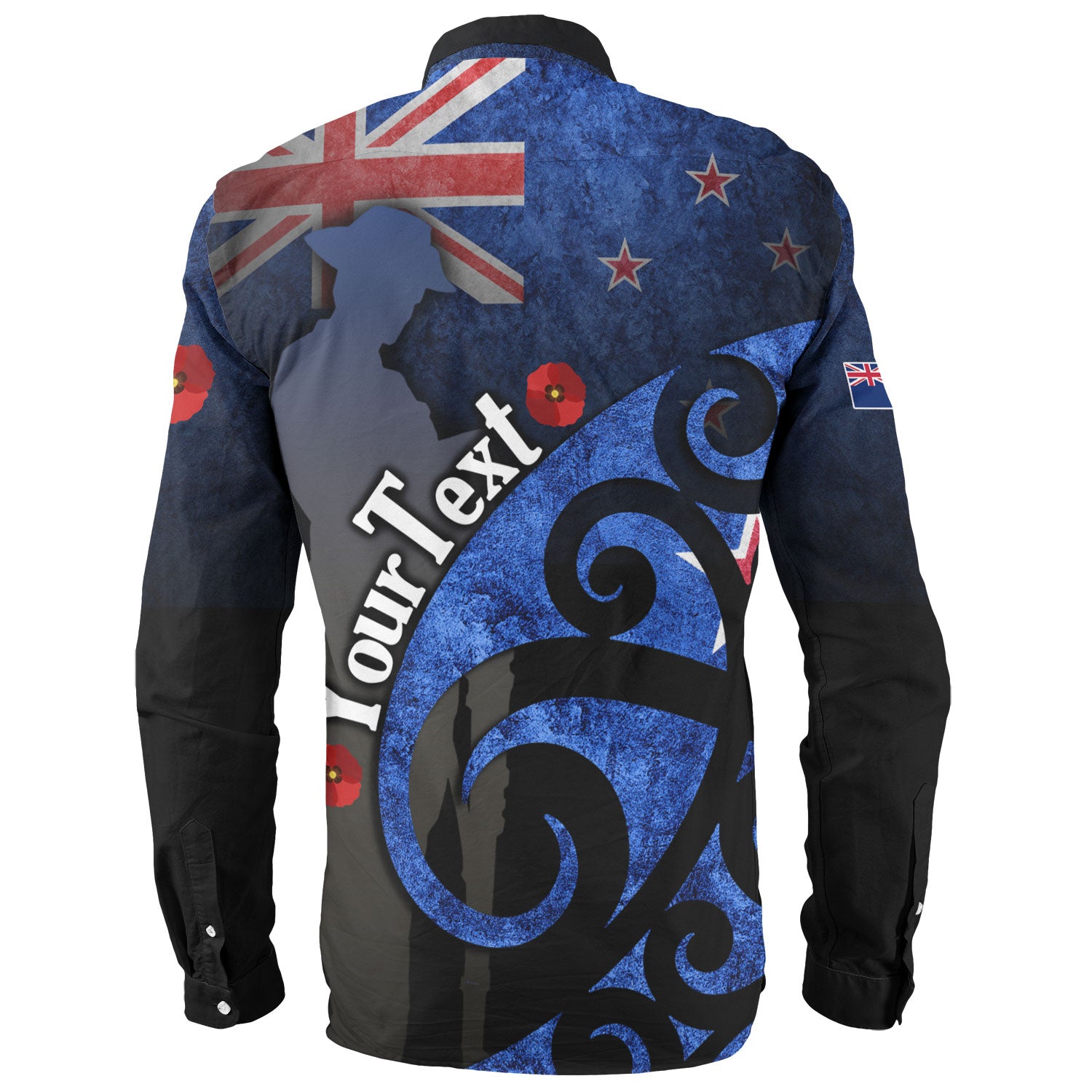 New Zealand Custom Personalised Long Sleeve Shirt Anzac Day Flag Maori Patterns