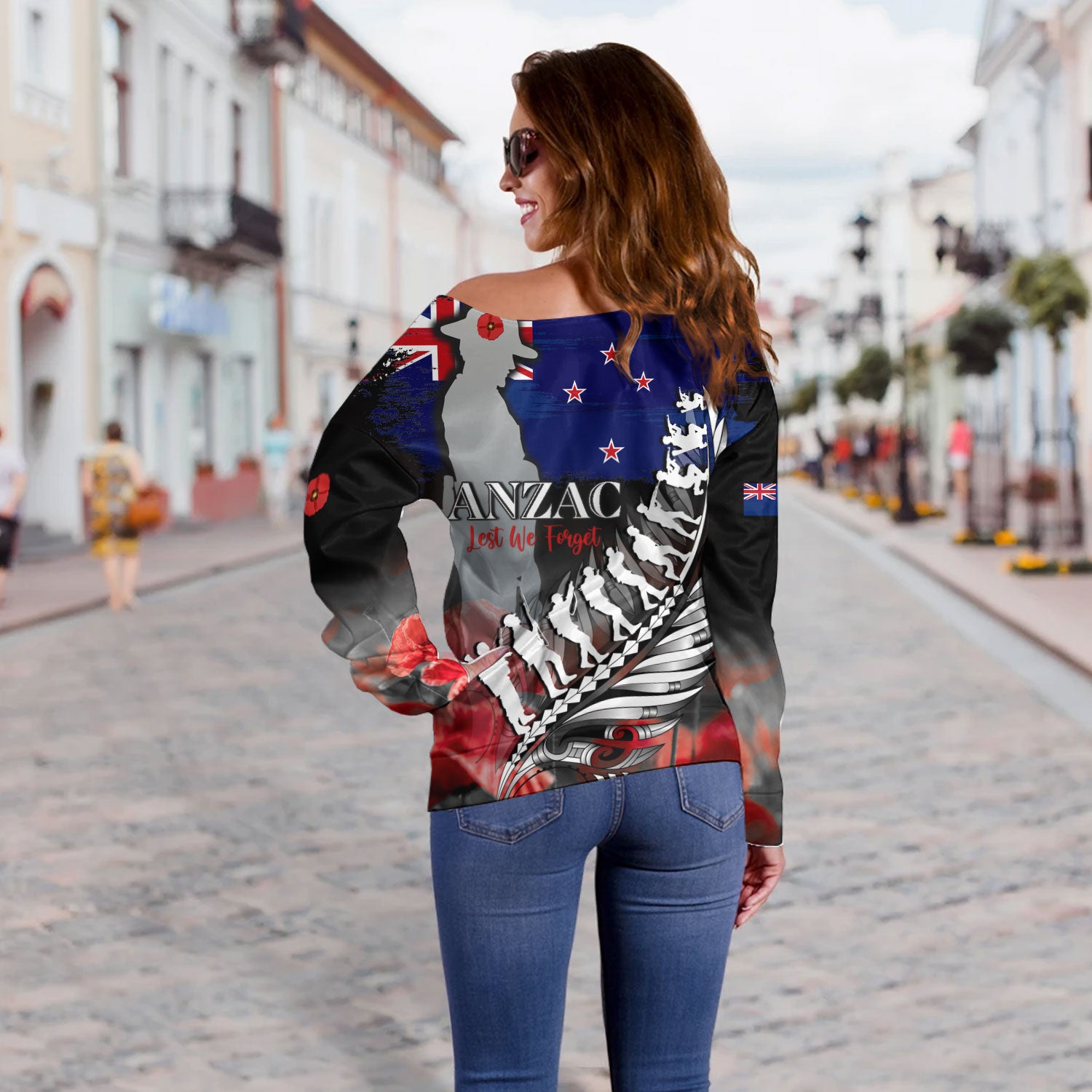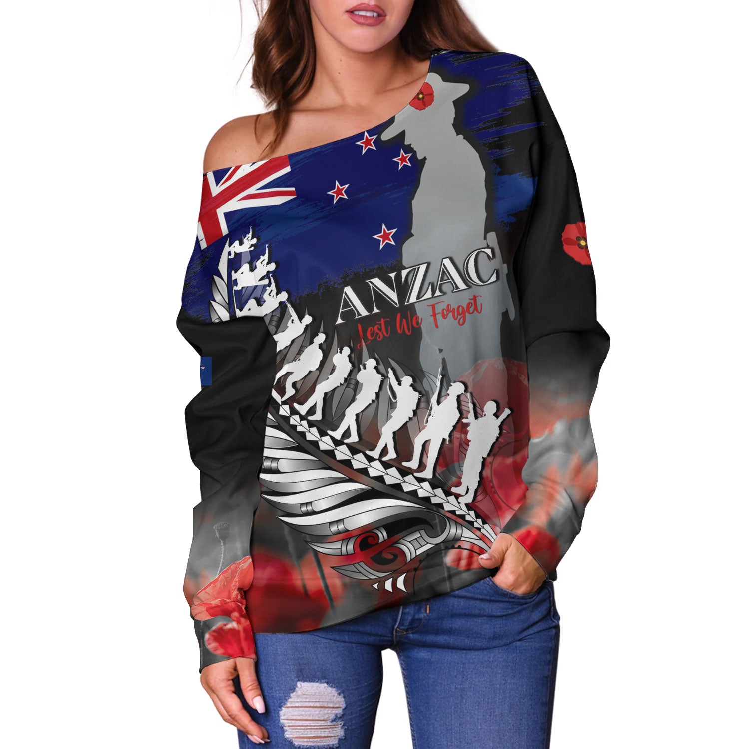 New Zealand Off Shoulder Sweatshirt Anzac Day Silver Fern Flag Style