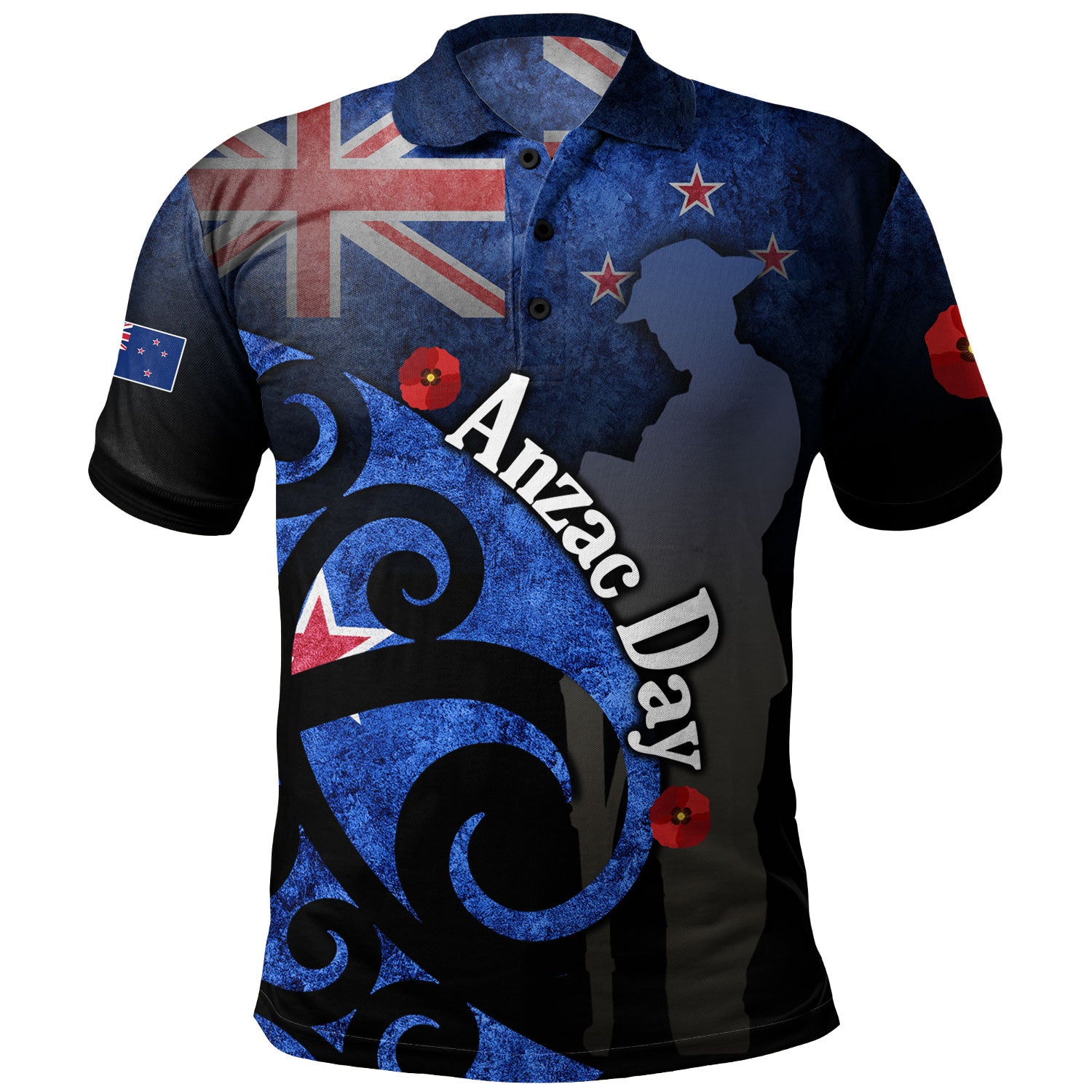 New Zealand Polo Shirt Anzac Day Flag Maori Patterns