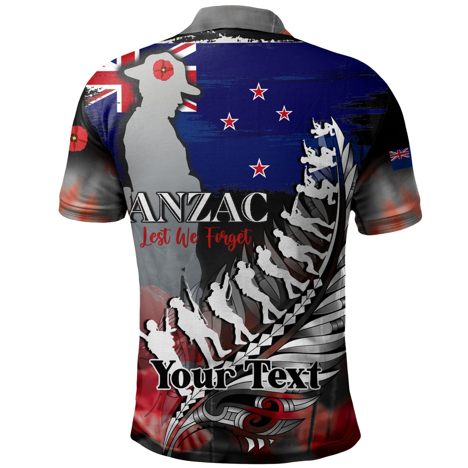 New Zealand Custom Personalised Polo Shirt Anzac Day Silver Fern Flag Style