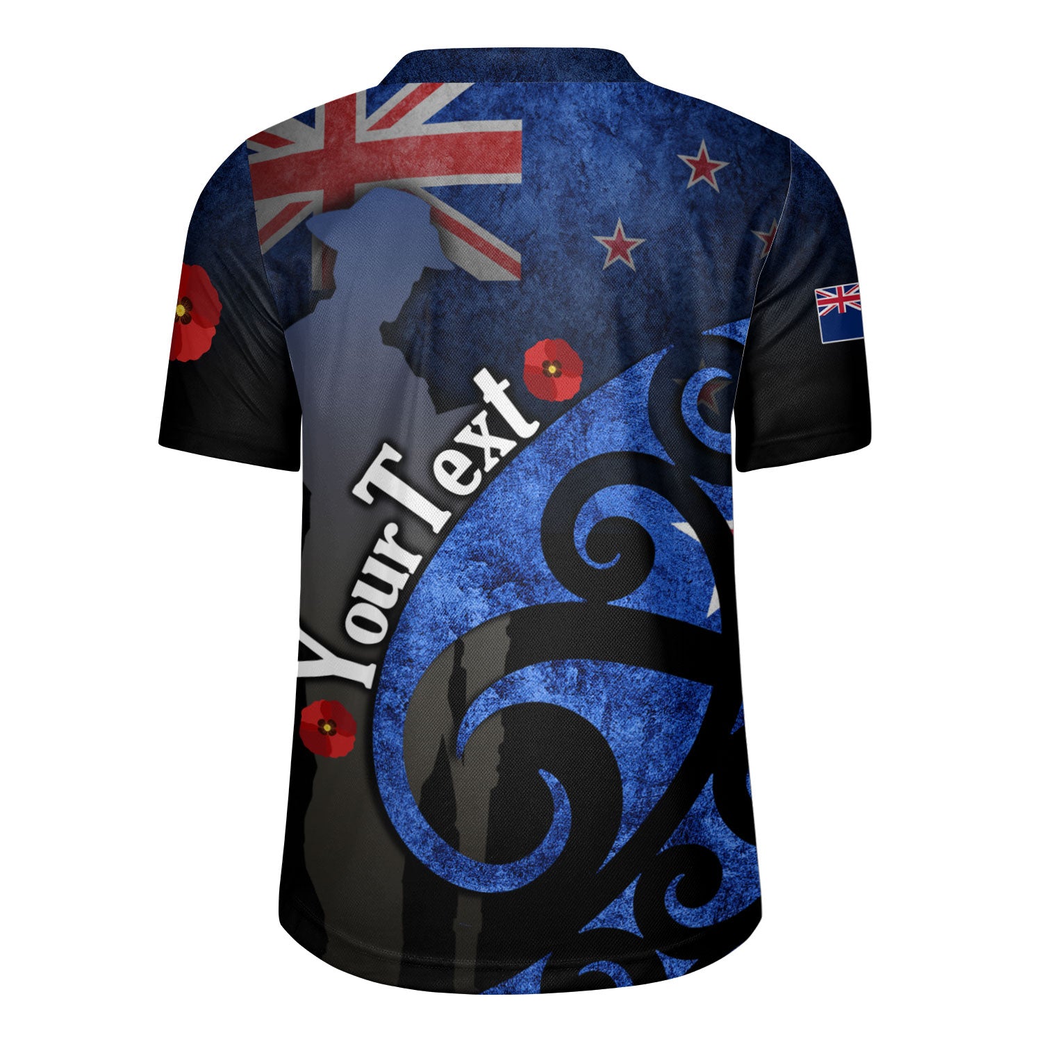 New Zealand Custom Personalised Rugby Jersey Anzac Day Flag Maori Patterns