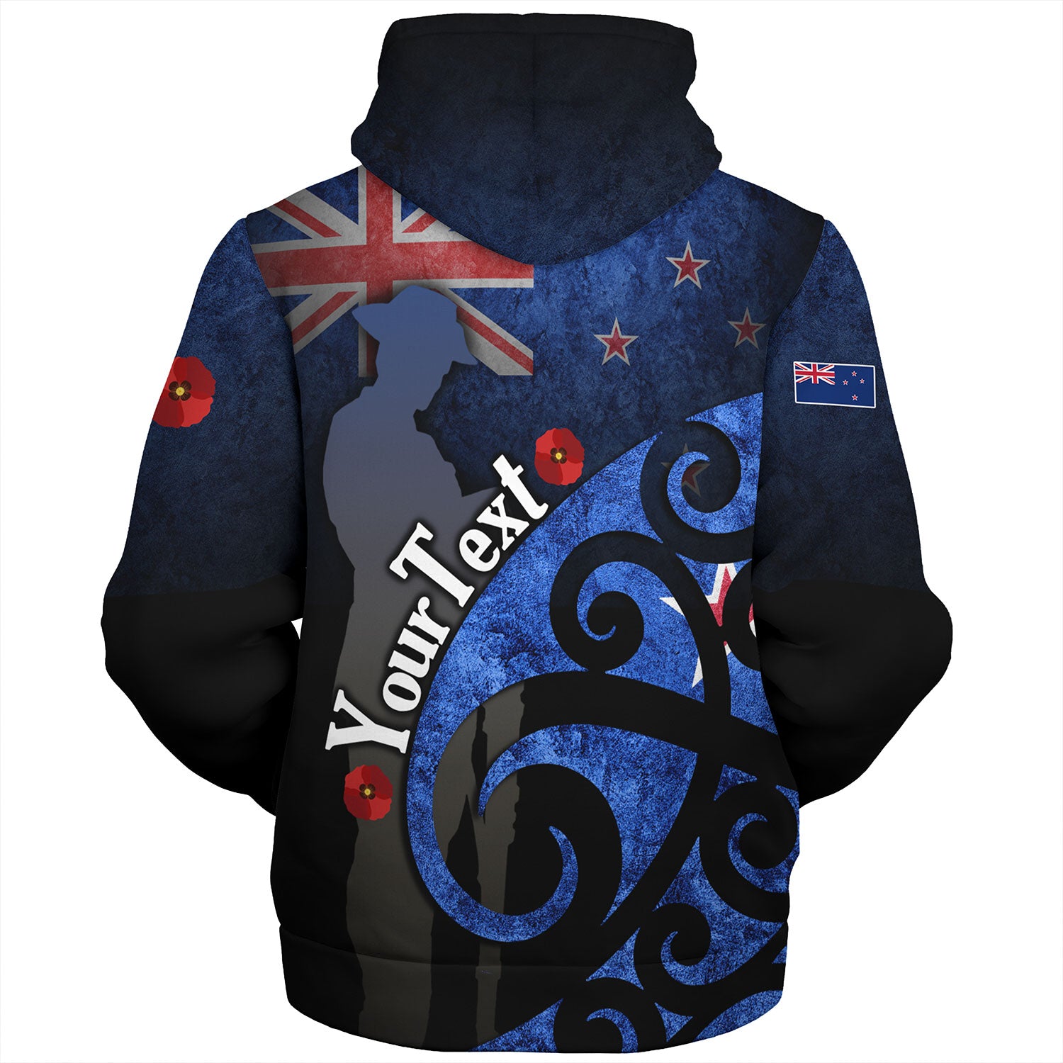 New Zealand Custom Personalised Sherpa Hoodie Anzac Day Flag Maori Patterns